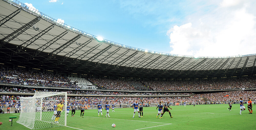 Mineirão was inaugurated in 1965 as the second largest football stadium in the world, with a total capacity for about 130 thousand people. With its rhythmic structure of reinforced concrete and its monumental proportions, a design by Eduardo Mendes Guimarães Junior and Gaspar Garreto, it immediately became an icon in the landscape. Today Niemeyer’s buildings, Burle Marx’ gardens and Mineirão Stadium are heritage listed.