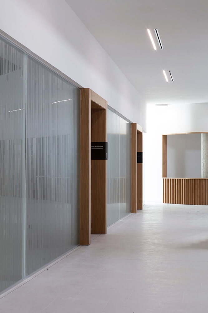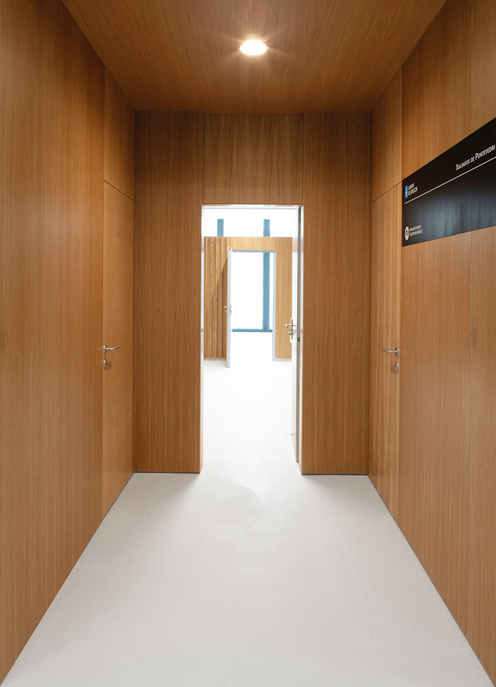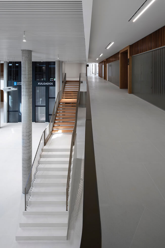 This project was promoted by the board of the Galician Government. It is conceived with the intention of regrouping all the courts in the city of Pontevedra, while creating the space needed in the next years. The old building communicates with the new one through a walkway, forming both a single functional unit. The urban area and the adjacent architecture, especially the existing court are the two clear condition of the exterior image of the building. This is why curve wedges and serial windows are the base of the new building façade.