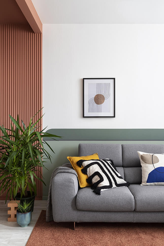 The colours selected for this project shaped the rooms and increased the space, proving that even the smallest projects like this 50 sqm one-bedroom apartment can be enhanced and turned into welcoming and comfortable homes.