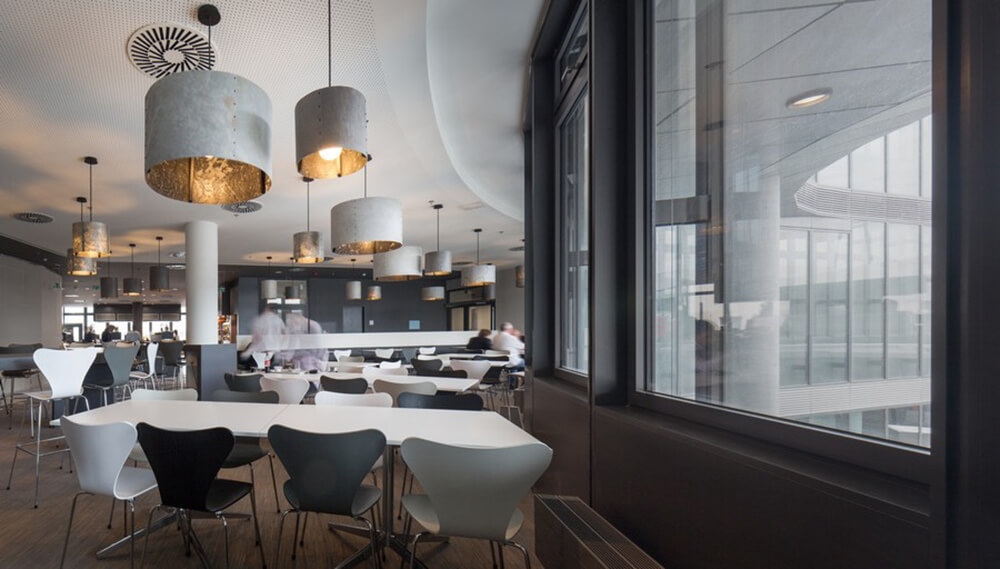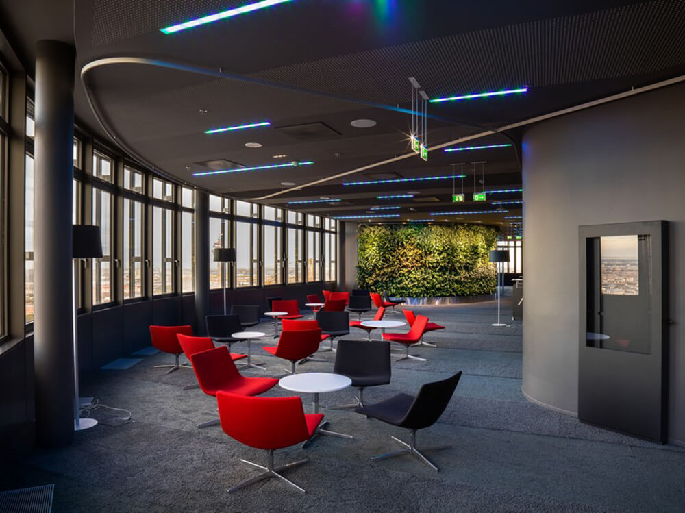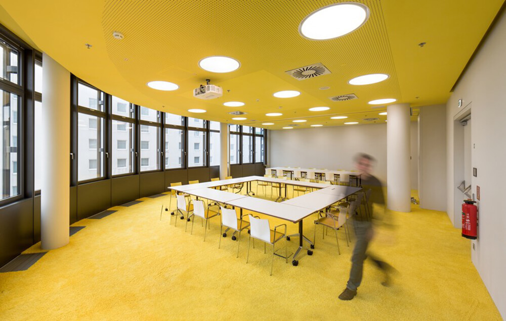 Zechner & Zechner designed a sustainable “slim building” with low primary energy consumption and limited use of domestic engineering, while at the same time having a healthy and comfortable climate. Regulatable external sun blinds, natural ventilation, heat dissipation via automatic ventilation, the redirection of light to optimise natural illumination and reduce energy consumption for lighting and natural humidification with islands of plants are used to achieve this.