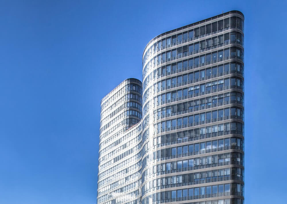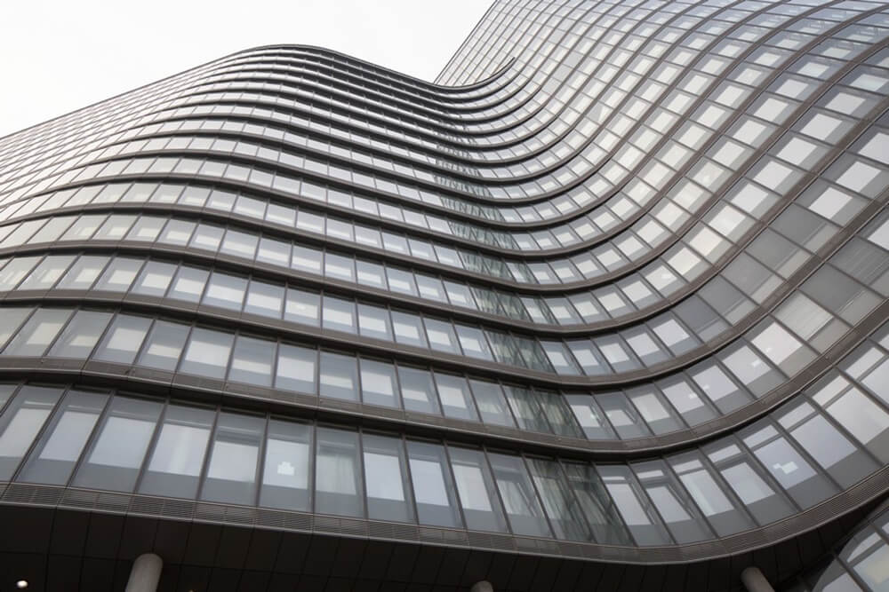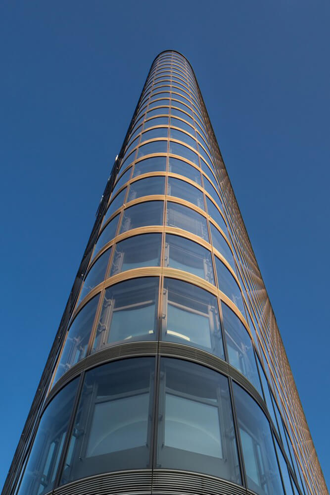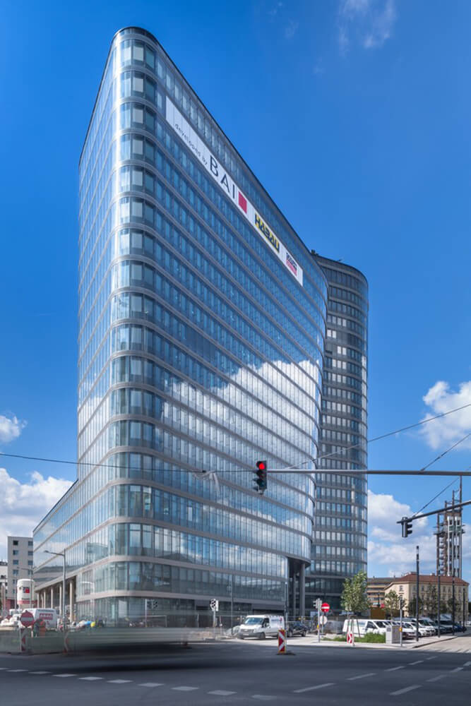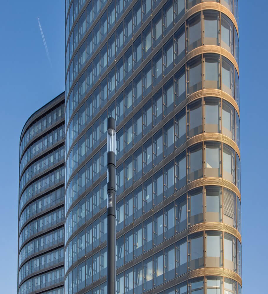 The 88m high office tower acts as a landmark for the new district south of the new Central Train Station. An S-shaped curve of the building and the recess at the site‘s northern border opens the structure to the forecourt. The dynamically curved main form and the smooth rounded surface are reminiscent of modern high-speed trains.