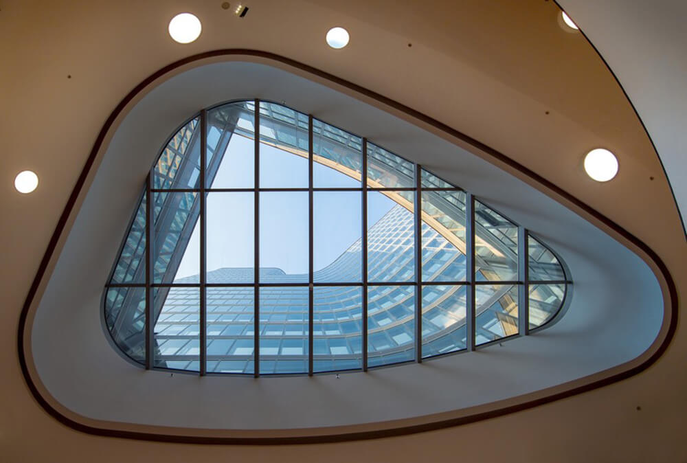The building is equipped with a double skin façade and supplied by district heating and cooling. Thanks to the activation of thermal mass and consistent use of waste heat a very low total energy consumption can be guaranteed.