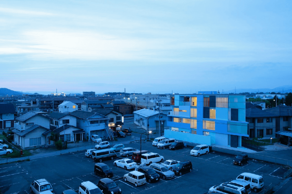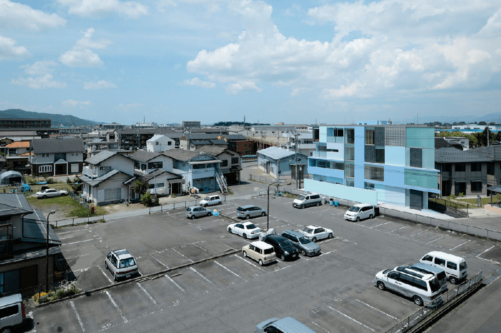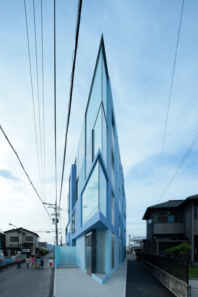 On the Corner is a castle where the boys and girls of the story of Michael Ende could be entering. Square elements configure this triangular castle! The site is a manufacturing area in Youkaichi City in Shiga Prefecture. There are many big factories in this town. Among the local people, there are many immigrants from North America.
