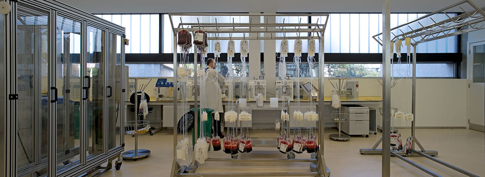 The Oporto Blood Bank is built to support all activities of regional blood collection and analysis as well as its partition in 3 components (erythrocytes, plasma and platelets). These components are later to be distributed to hospitals and pharmaceutical industries.