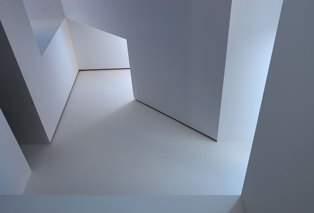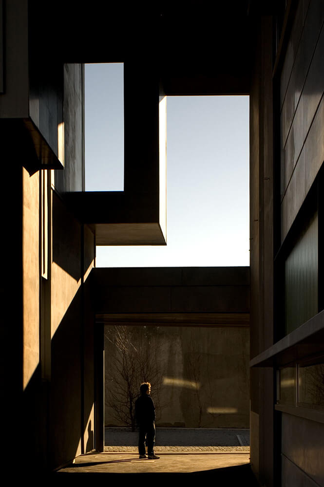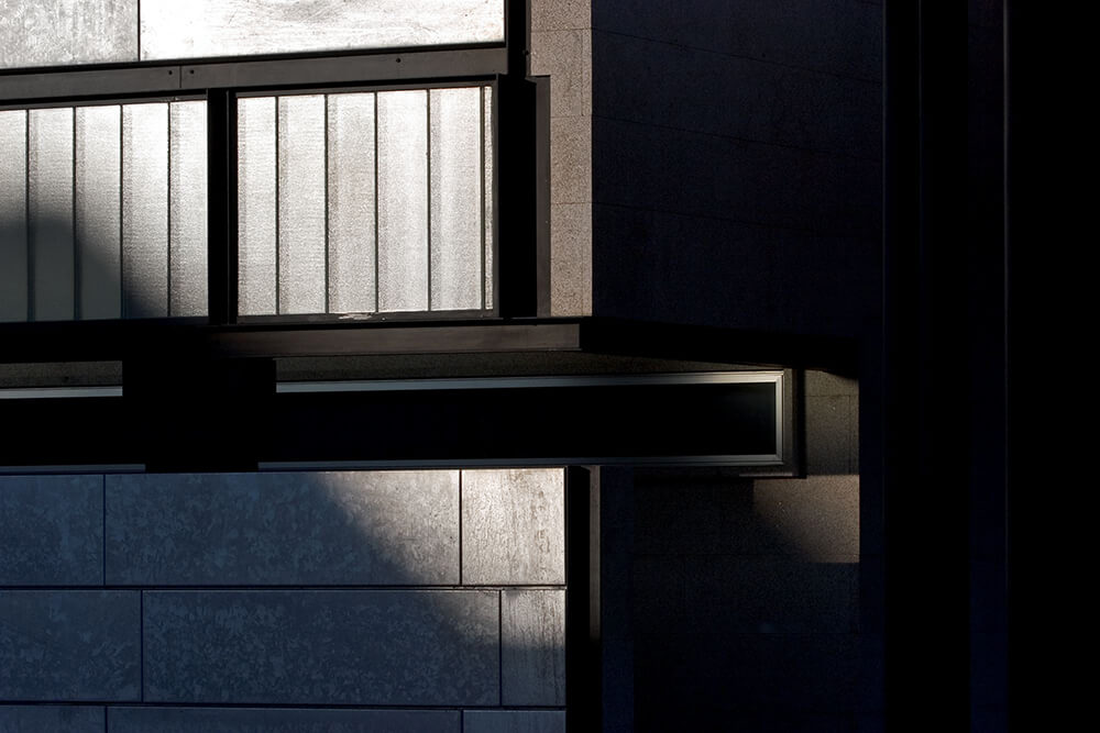 Inside the plot, the views towards the surroundings are cutout through long and narrow windows, transforming the chaotic environment into abstract views out of context.