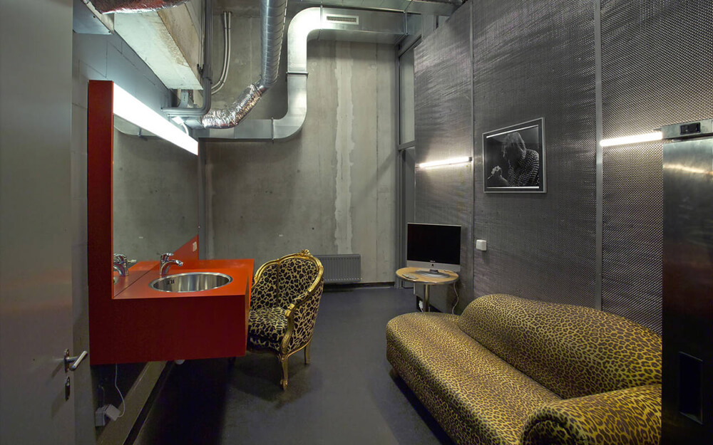 The restaurant is also located on this internal street. Loading and unloading on the internal street takes place in full view of the visitors. This befits a cultural institute such as this where, unlike in a theatre or concert building, there is no strict separation between front and backstage. With pop concerts, the collective experience is much more important. Here, a night out is more than just attending a concert. Therefore the visual connections and routes through the building have been emphasized, to encourage all sorts of encounters and contacts among a diverse audience ranging from teenagers to old rockers.