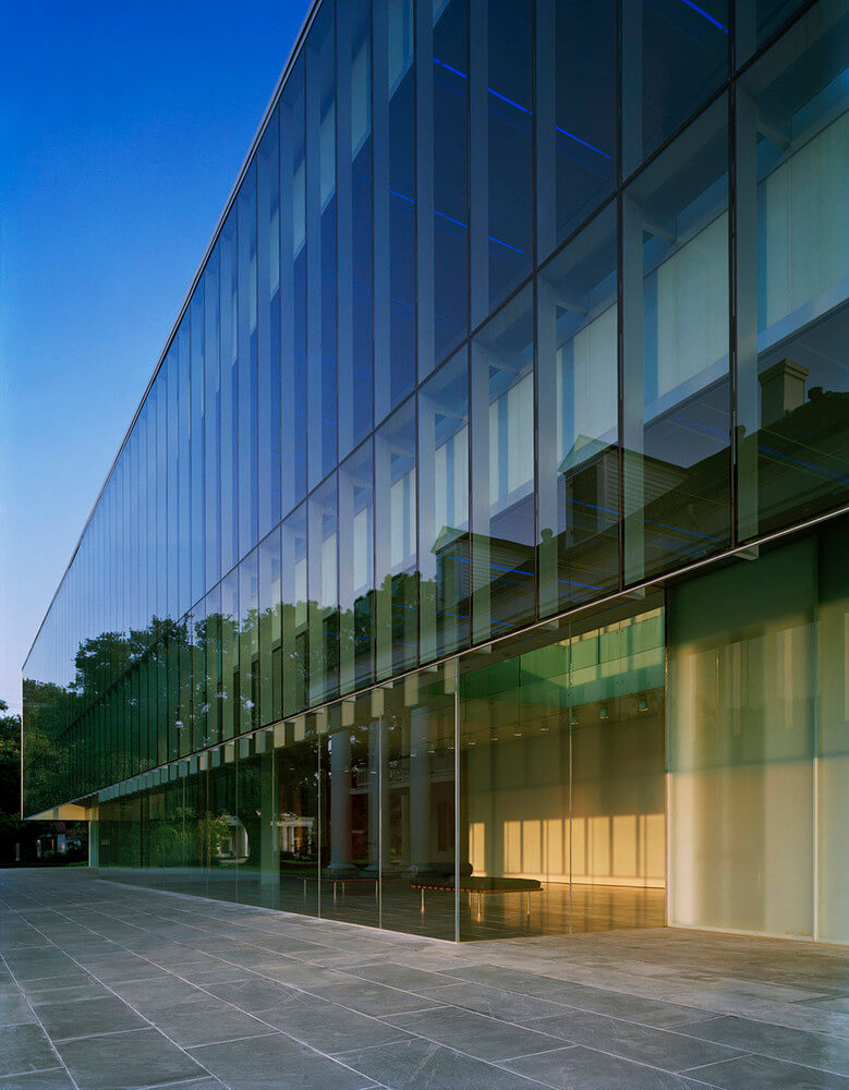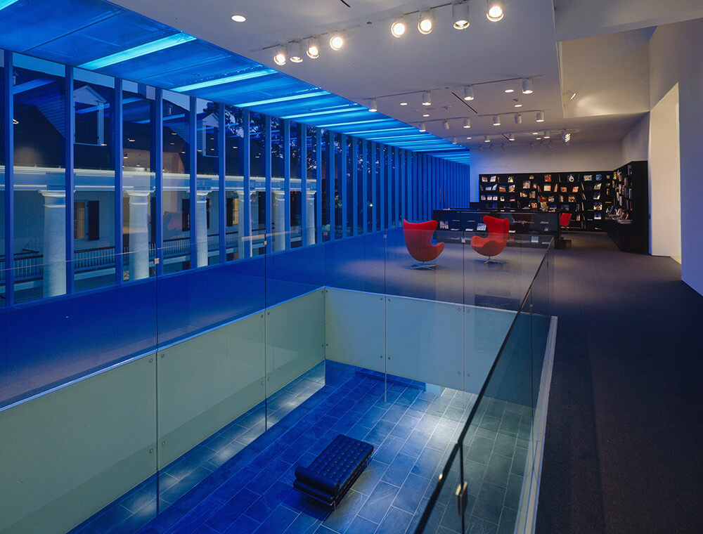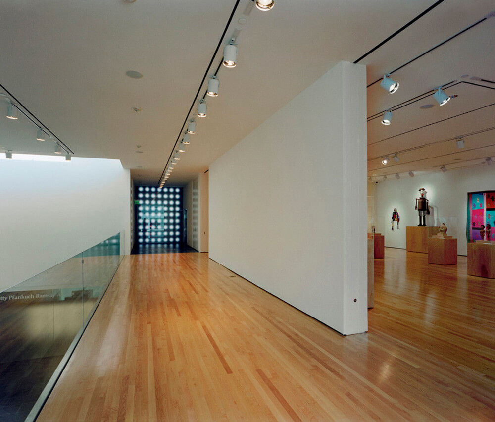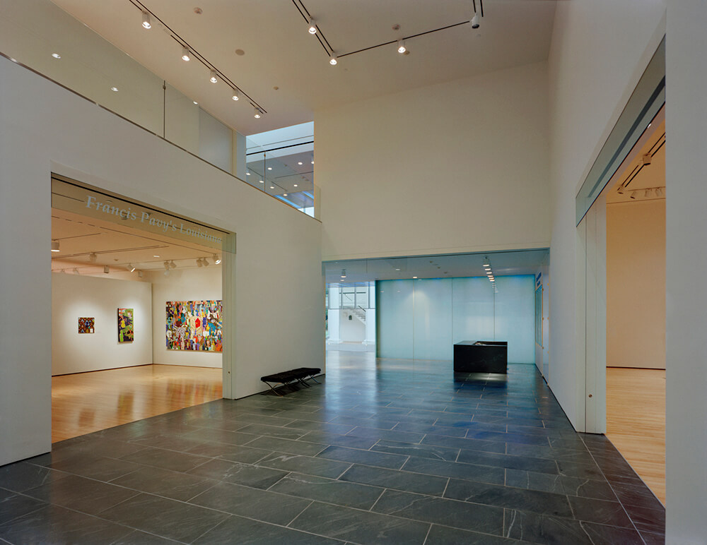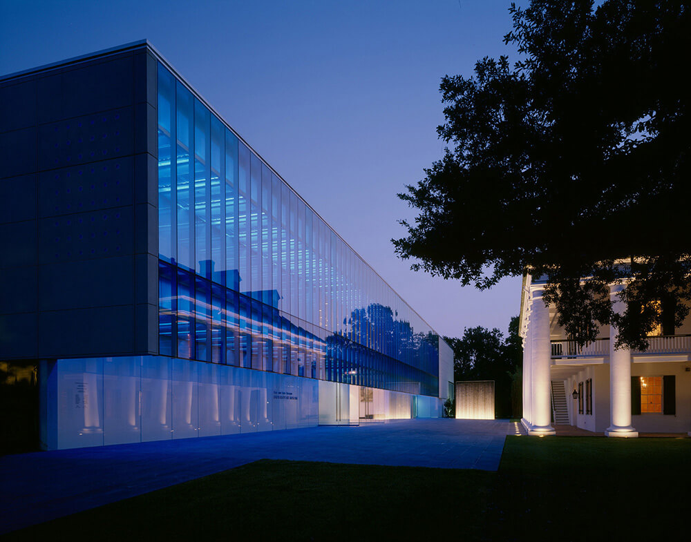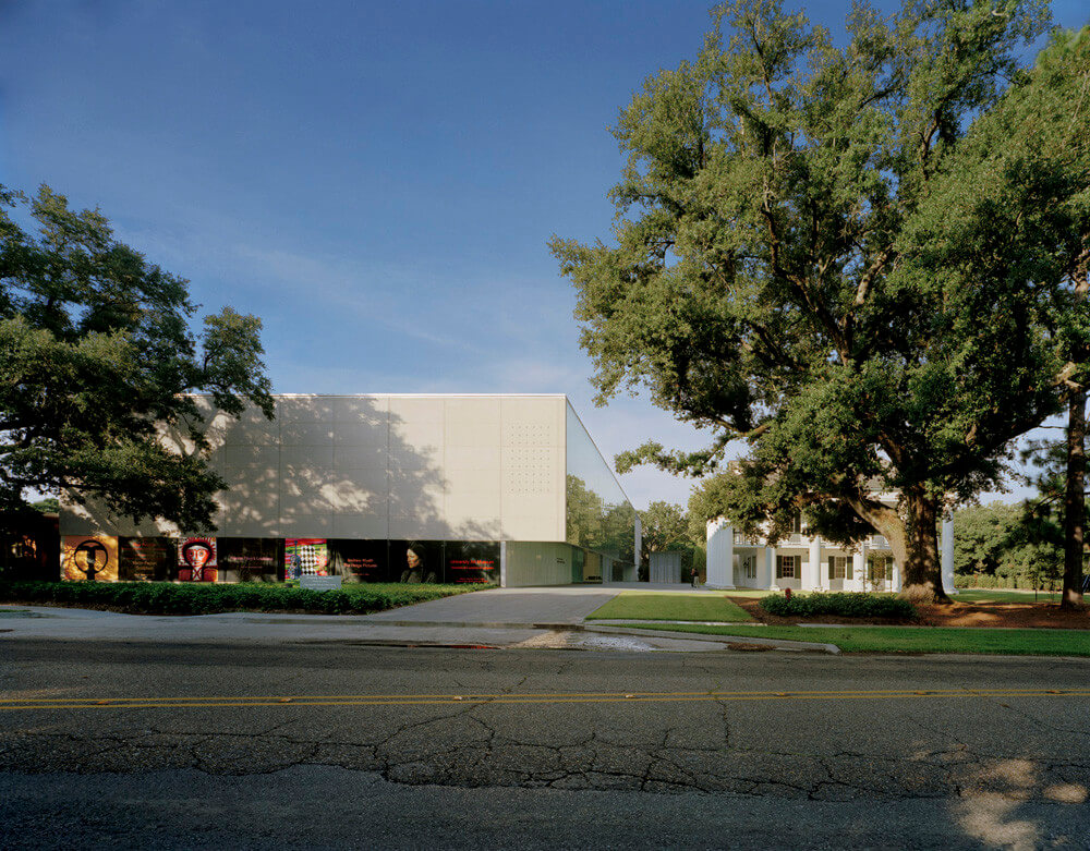 The new Paul and Lulu Hilliard University Art Museum that is part of the University of Louisiana at Lafayette is located at the gateway to the main campus. From the campus it faces a sculpture garden and a Louisiana Plantation House reproduction that is the work of the noted architect A. Hays Town. The exterior of the building is composed of a glazed glass curtain wall forming a reflective backdrop for the Town structure and presenting a sleek flank to visitors entering the museum. The gallery and support space are designed to the highest industry standards, with honed Cordosa limestone and clear maple floors that lead through pure white gallery volumes. The museum makes room for a changing exhibits gallery of 5,000 square feet inside a total pavilion area of over 30,000 square feet. “The gutsy site plan creates a dynamic dialogue between buildings that engages the interiors outward.” – Jury Comments, 2005 AIA National Honor Award for Interior Architecture.