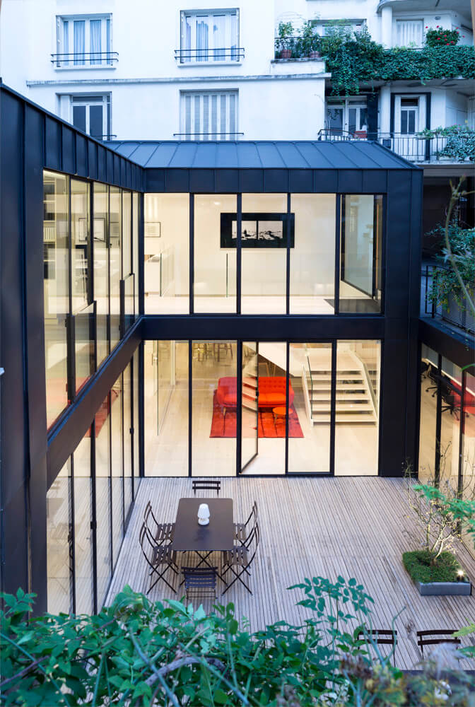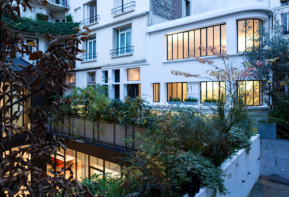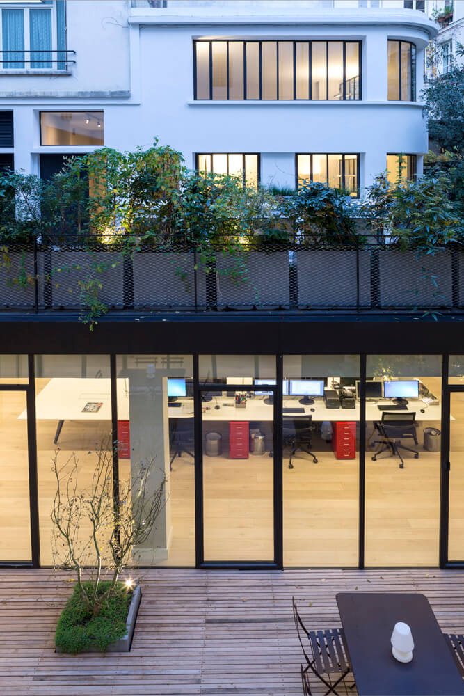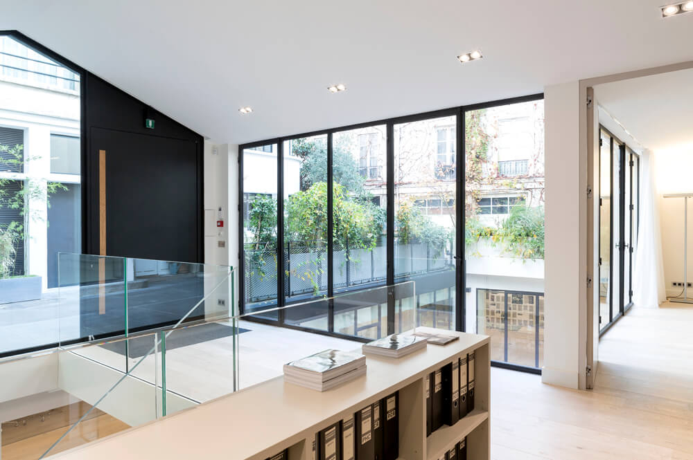 56-58 rue Vieille du Temple is located in the heart of the Marais, in the 3rd arrondissement of Paris – a popular neighborhood of boutiques and galleries. PCA’s new agency replaced an old printing office that was located in a courtyard of a 1950’s building. The goal of the project was the restructuring of a workshop and its annex into an innovative office. Through a partial demolition, the open-space work areas are built around a patio. This design change brings a flood of natural light underground.