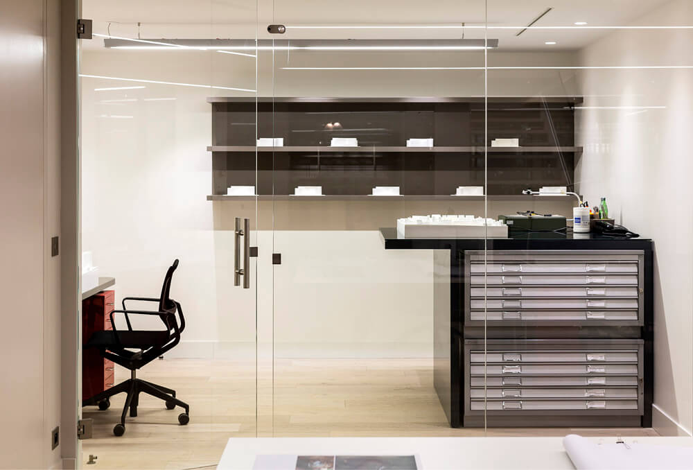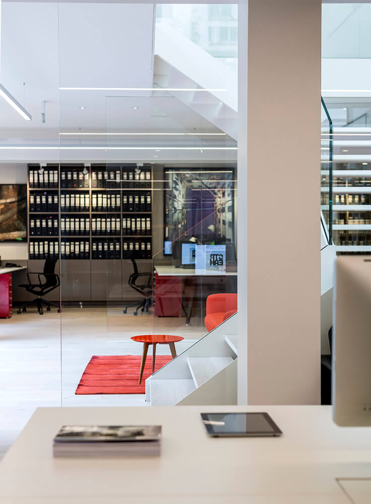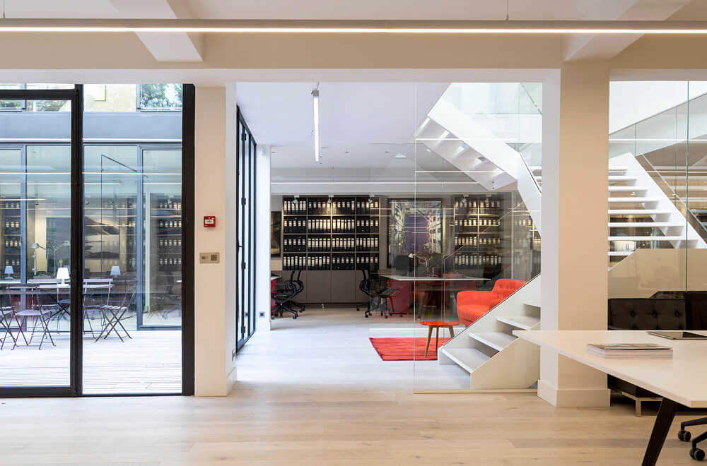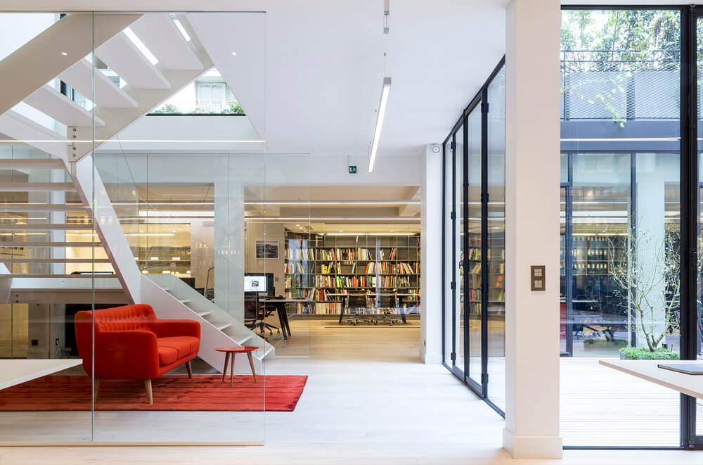 In the spiritual reflections lead by PCA on new workspaces, especially by the publication of Stream 02 After-Office, the notion of transparency and communication has been put into effect by creating vast open-spaces while still preserving various private areas: a library and several meeting rooms. A favorable work environment has been created, offering better working conditions for collaborators and visitors of the agency, increasing the emulation of collective work and also a range of concentrations.