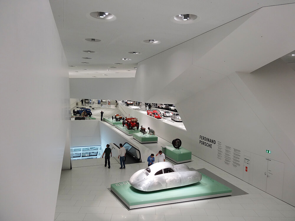 The translation of the versatile and vivid brand into the language of architecture was the central draft concept. Specific conditions which the Porsche brand conveys both spatially and sensually to visitors are featured to the museum. Driving and speed, statics and logjams can be experienced both in the building’s configuration as well as through the spatial medium. The museum is a clearly defined open place which incorporates all brand specific qualities.