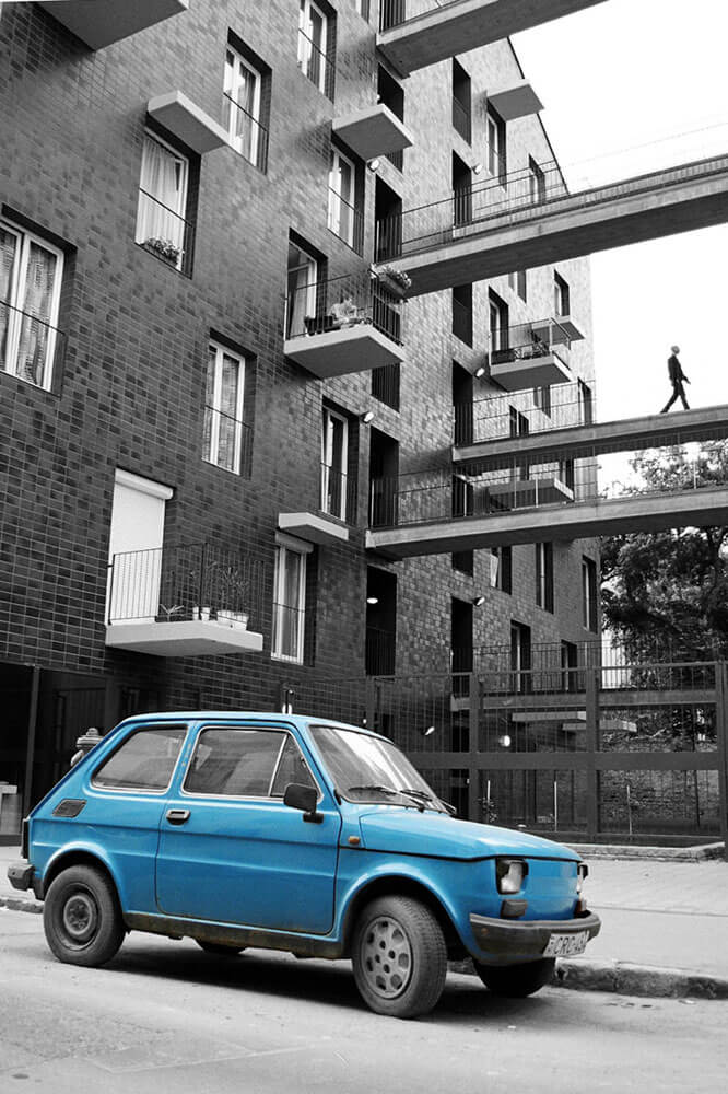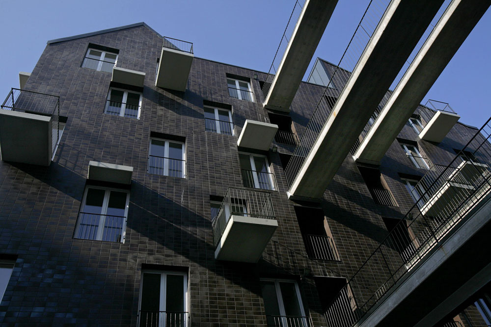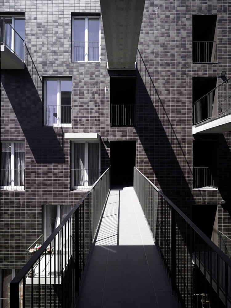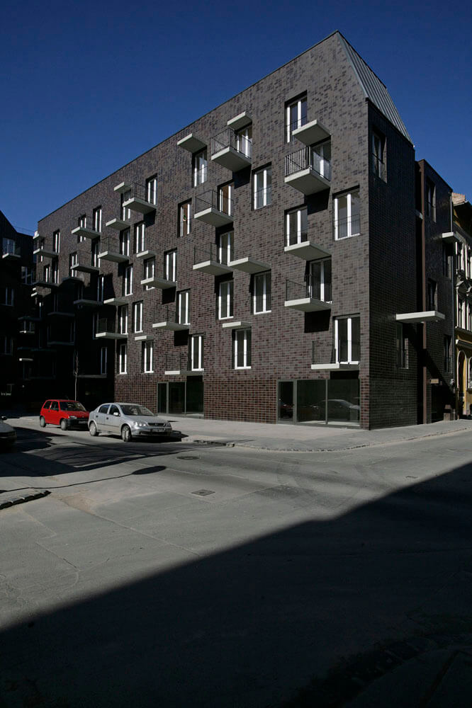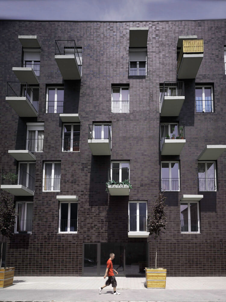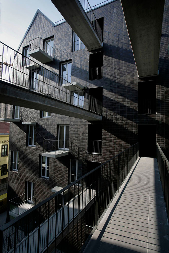 The final building outline was determined by the scale and proportion of the sorrounding buildings. We didn’t want to form blocks that oppress their environment. Our primary aim was to find an acceptable, proportioned building form, that keeps the relative regulations, and we connected the most optimal number of apartments to this form. The sorrounding buildings and environment inspired the volume of the building. The existing firewalls on the location determined the volume from two sides: on one hand they are identifying characteristics of the site, on the other hand they ’section’ certain forms and buildings, therefore finishing these were one of the tasks. Instead of building something aside, we added the form to the site.