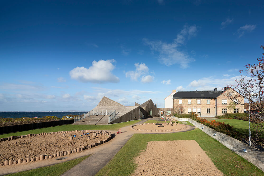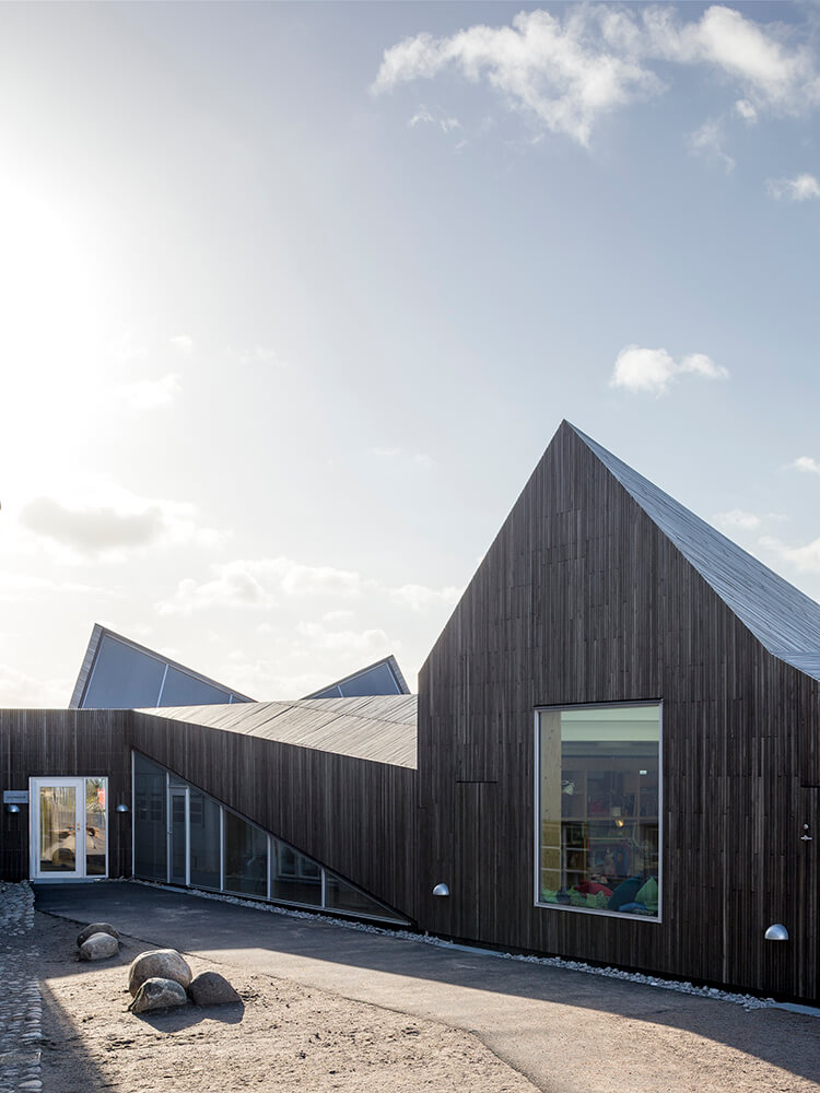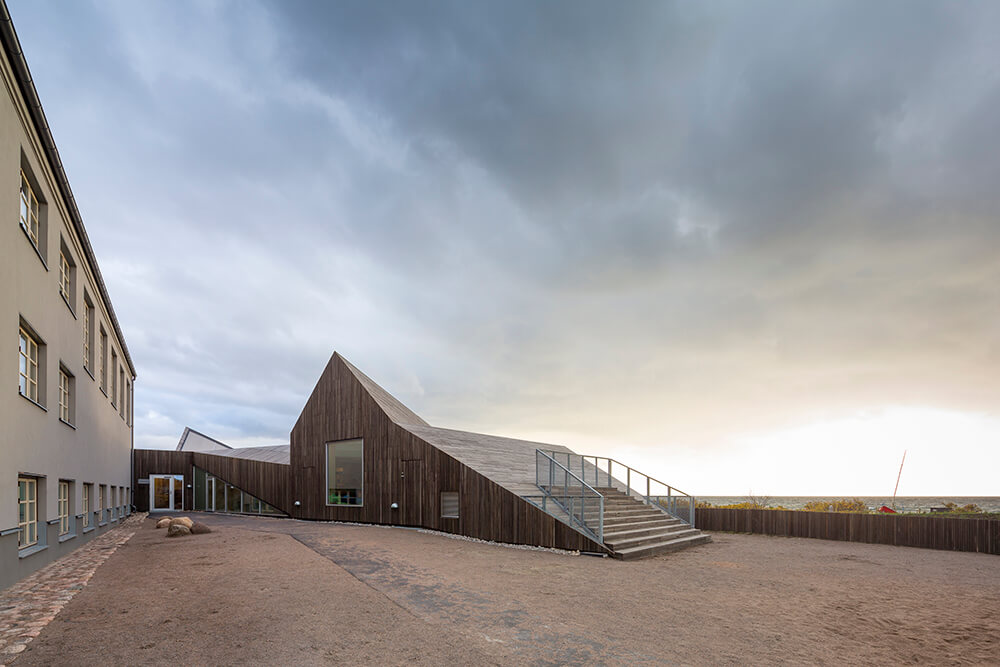 The preschool is built on the borderland between the beach and the old fishing town of Råå, directly connected to the local school.