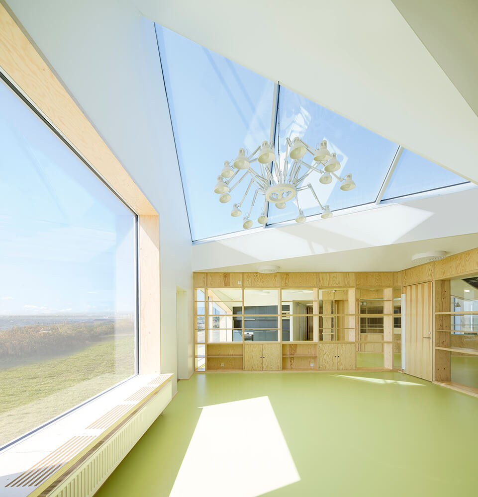 The applied typology is challenged and used to create the best light incidence for the children at all times of year.