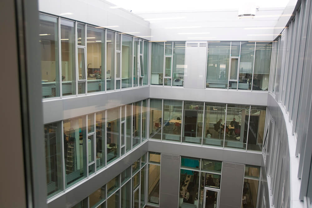 The new Reykjavik University is seen as a town rather than a building. Laying out the University as a classic, closekniturban structure with streets, squares, recesses and courtyards creates a place with urbanity, dynamism and community at its centre. The main central space of the University – Crossroads – fulfils the function of the main square of a classic town. This is where people converge and diverge, the place from which the main arteries of human traffic radiate. These arteries demarcate the different faculties, such that each faculty forms a distinctive neighbourhood within the city, each with its own little alleys, squares and surprise views of the surrounding landscape. The interior courtyards afford increased opportunities to be outdoors, as they provide shelter from the wind while the low height of the buildings lets in the sun.