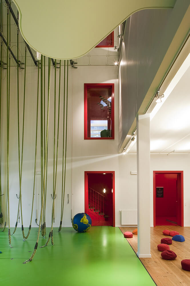 The building is converted to offer as much transparency and openness as possible within the old structural frame, and at the same time facilitate strange and unexpected paths, mysterious places and new views.