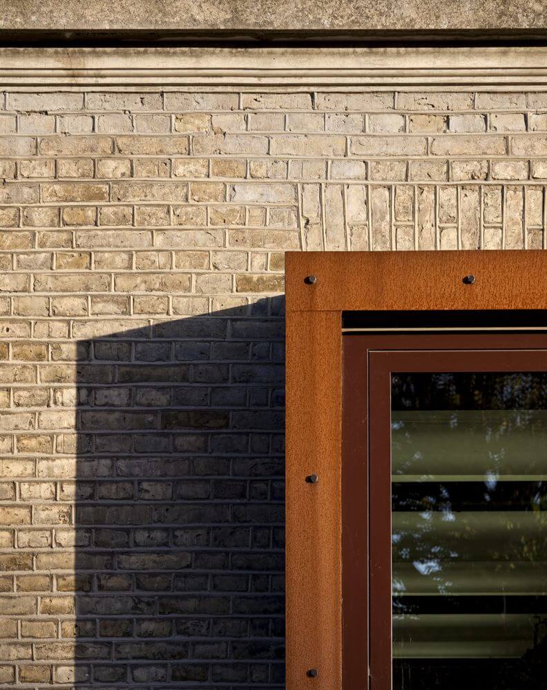 1) To connect the 5 buildings, all very different in material and volume, with the use of the same material – corroded steel for all new additions. Large vertical and horizontal slabs of corroded steel walls connect the different volumes and make a sense of unity.