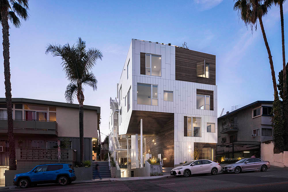 This 7-unit housing project in West Hollywood continues LOHA’s commitment to promoting thoughtful design through an adaptation of the courtyard housing typology. Located on a constrained site on San Vicente Blvd between Santa Monica and Sunset Blvd, this project judiciously reduces its allowable building envelope to maximize open space and provide a large common courtyard. Focused on developing productive new models for added density on small infill sites across the City, this project prioritizes outdoor space, social connectivity, and porosity at the street level.