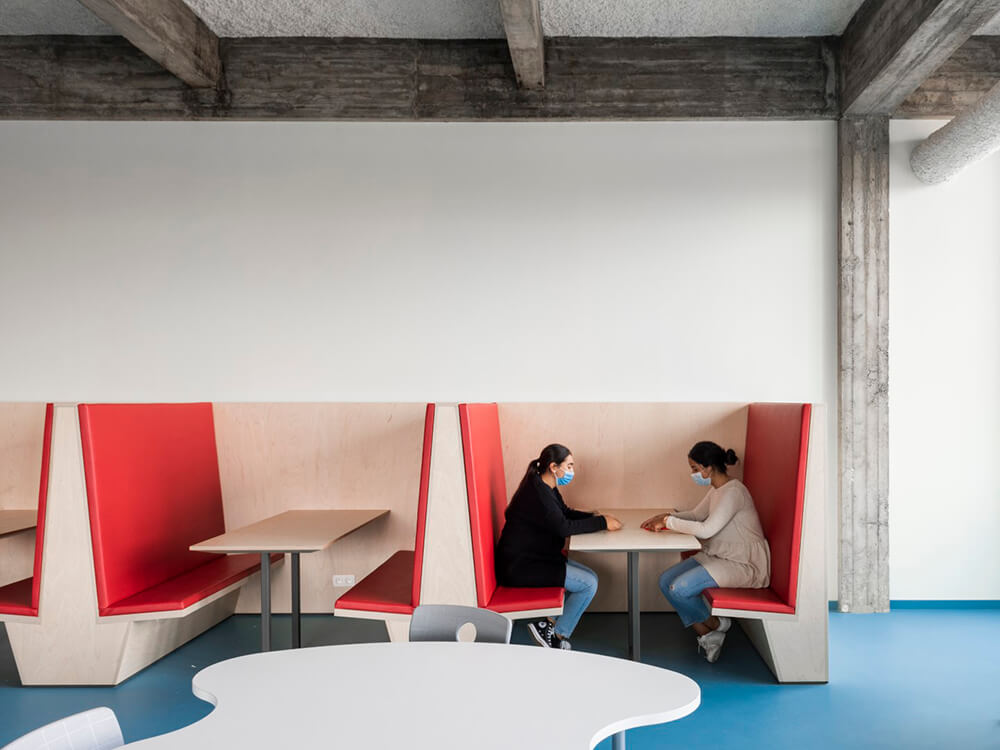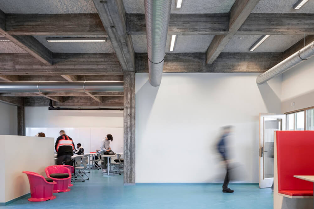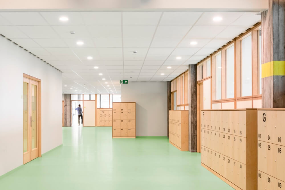 The concrete structure of the former tabaco factory is preserved during the renovation and will facilitate the construction of modular spaces between the existing columns. The building will contain 80 classrooms, 2 gyms, different laboratories, polyvalent rooms and playgrounds on the roof.