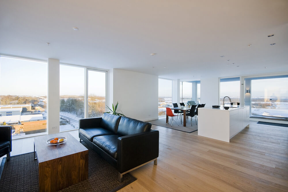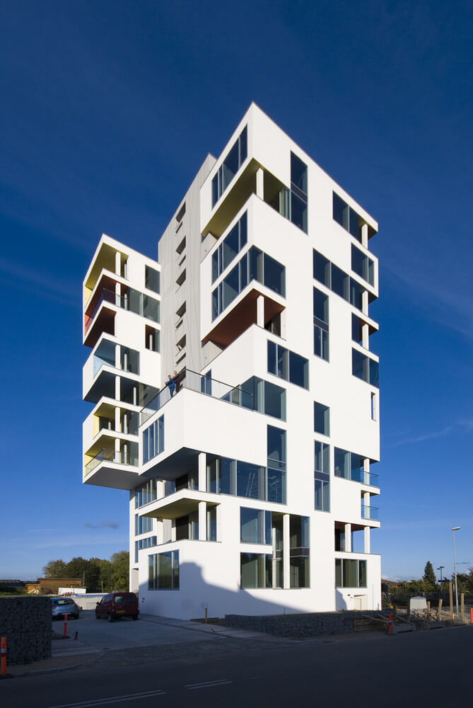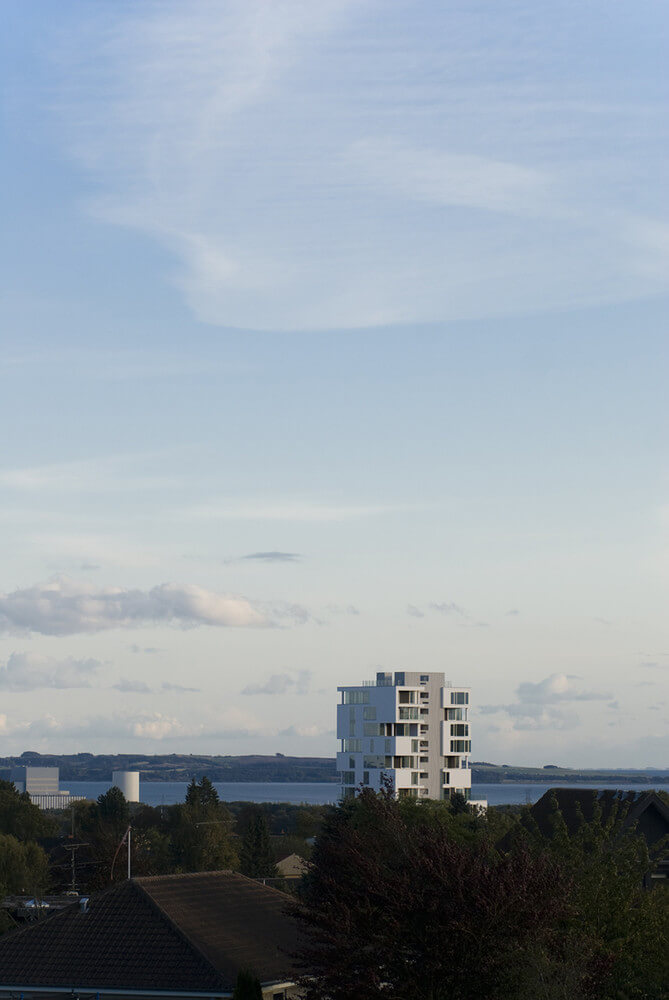 This unusual structure with its protrusions and displacements provides all of the apartments with generous outdoor spaces, and views of Aarhus Bay and the city itself. Similarly, every apartment enjoys sunlight in the morning, mid-day and evening, whether placed to the north or south of the silo structure.