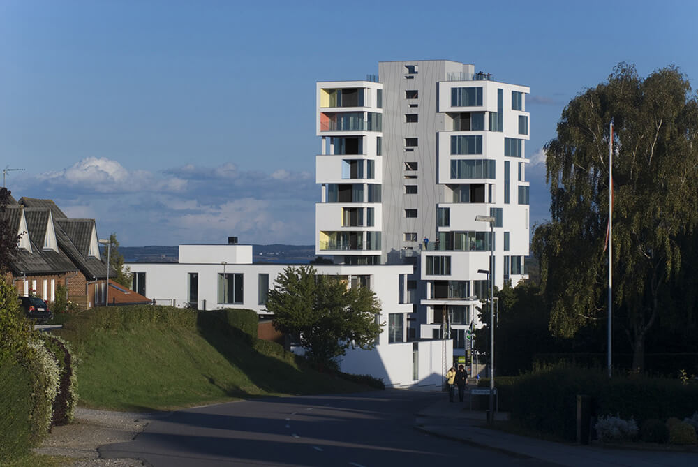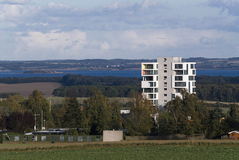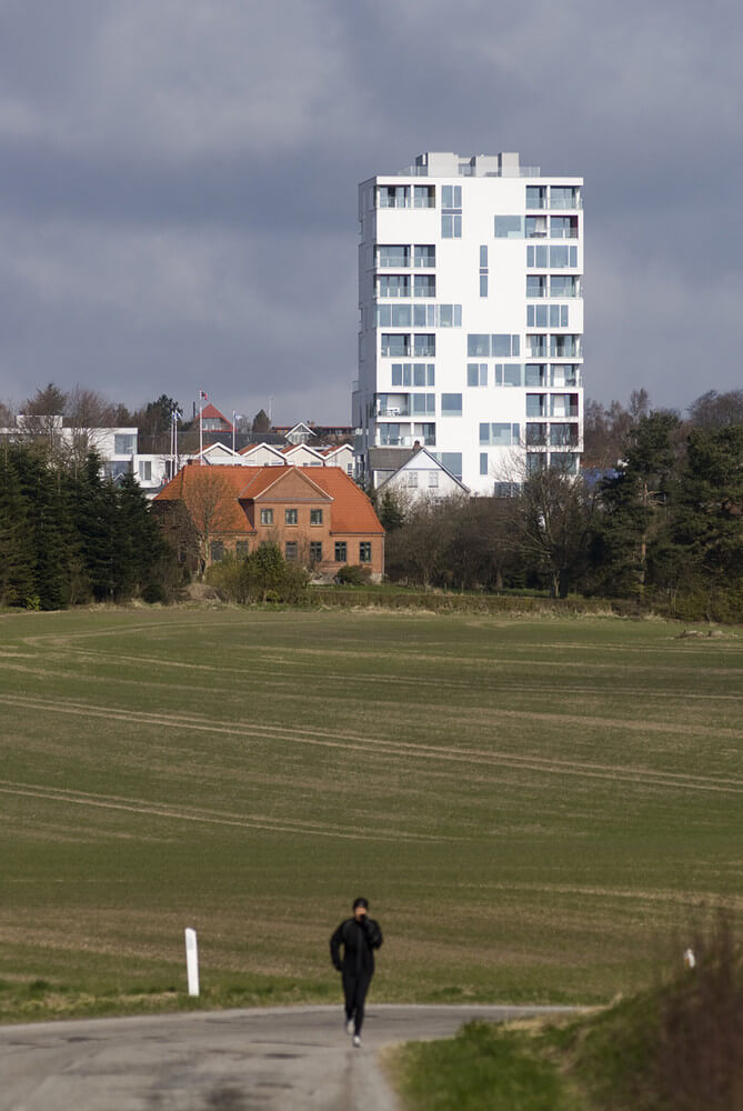 Many towns in Denmark have centrally located industrial silos; most are no longer in use, but continue to visually dominate the local skyline. This is also the case in the town of Løgten north of Aarhus, where the former silo complex has been transformed into a ‘rural high-rise’, with 21 high-quality residences composed as individual and unique ‘stacked villas’.