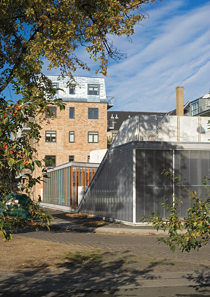 The neighborhood of Skanderborggade/Krausesvej is characterized by a mix of buildings made up of dense urban blocks from the turn of the 19th century, interrupted by a scattering of villas, and by a large gap in the structure caused in part by urban renewal.