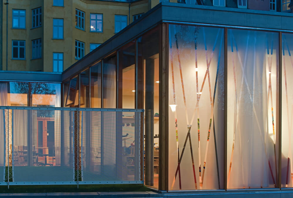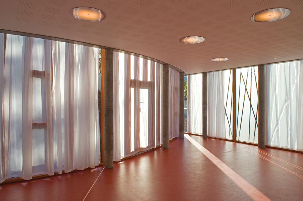 The district zoning plan mandated institutional buildings of no more than one storey. In order to fulfill the requirement for an outdoor area equal to that of the built area, it was thus a prerequisite that the outdoor areas had to in large part be placed on the roof.