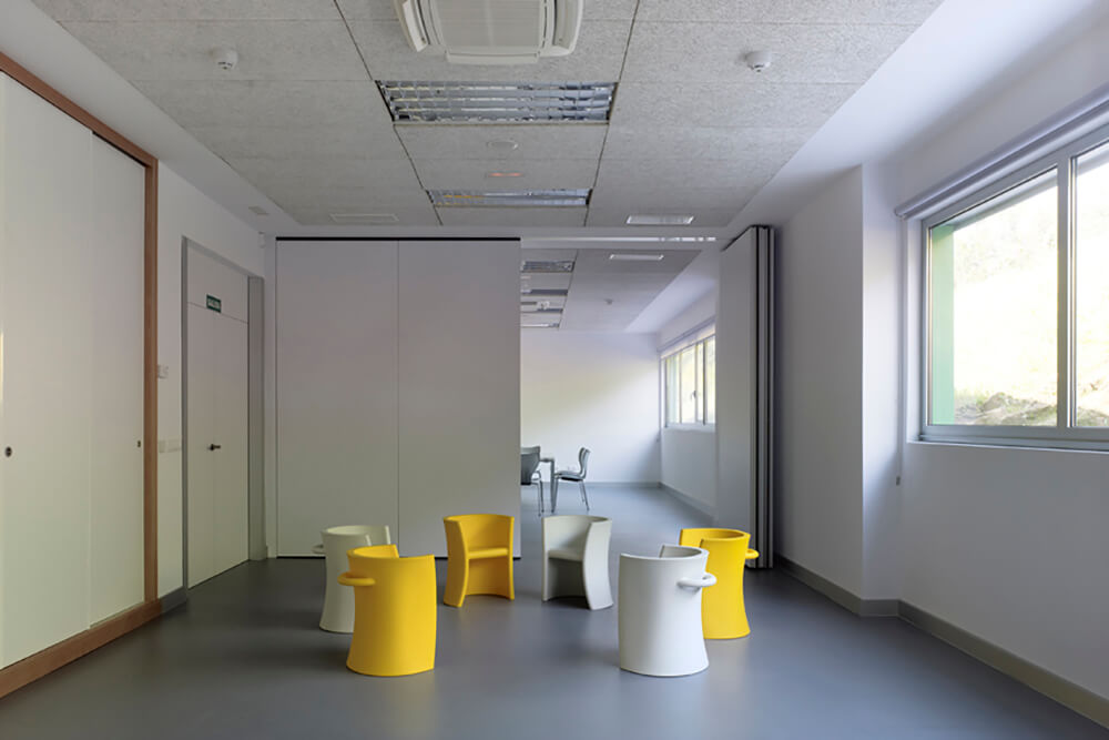 In this way, this possibility of distribution means an improvement in the use of the building, connecting the two spaces: entrance hall and multipurpose room, and the central courtyard too.