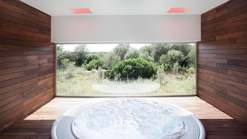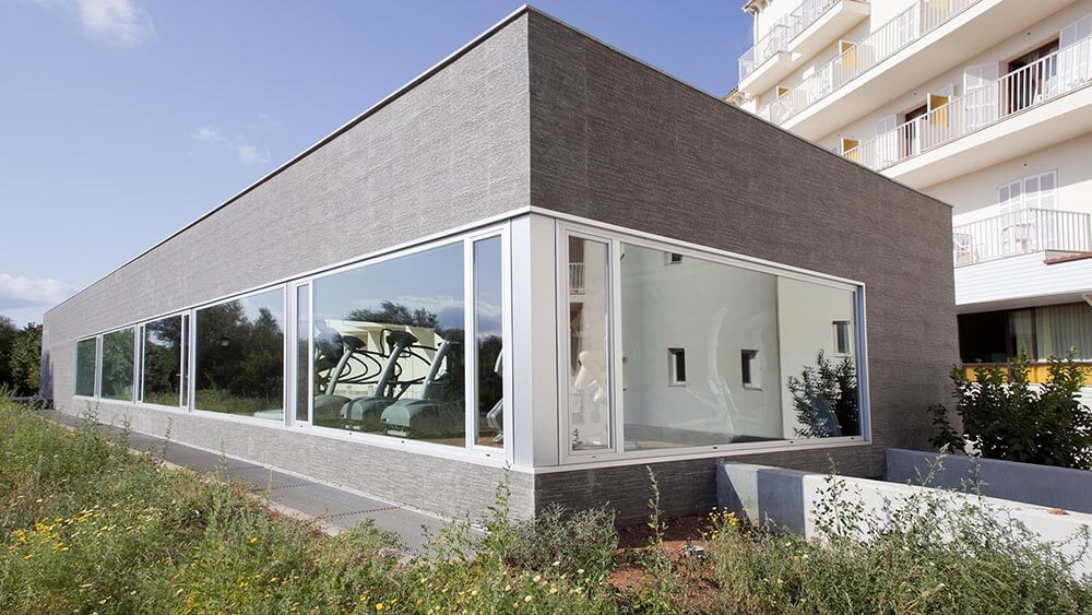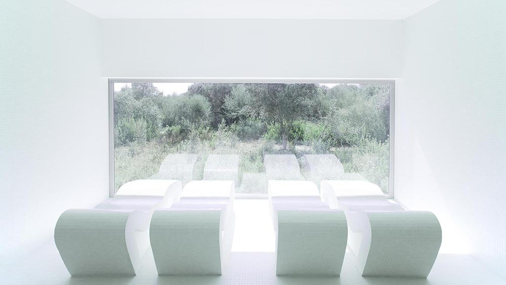 Hotel Castell dels Hams was established on the island of Majorca amid the Mediterranean vegetation in 1967. It is a small hotel that, over time, went and through subtle improvements and extensions and now it has become one of the most distinctive hotels in the eastern part of the island. The last of the alterations is a spa to supplement the heated pool. The spa is located to give the visitors the best views of the surrounding landscape. It is filled with light in all rooms where light is needed, intended to offer skin treatments and relaxation. Colorful showers of light flow through the openings in the roof and the space is sculpted. In this way, the building itself becomes part of the treatment, offering a feeling of total immersion to the visitor, a feeling of well-being created by nature when it is introduced into the building.