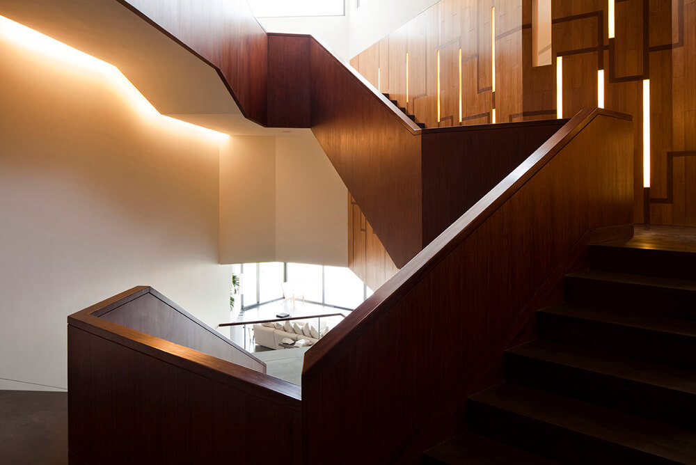 Upon entry, one gets glimpses of the sea whilst going down to the public space of the chalet. On this lower level, the house extends into the landscape and the sea, accentuated by an infinity pool in the garden. The private side of the house, located at the entry level, is concealed from the visitors by a bamboo wall. Bedrooms and private living spaces remain isolated from daily activities. A three-way stair, placed at the center of building, organizes the different flows of family, friends and guests.
