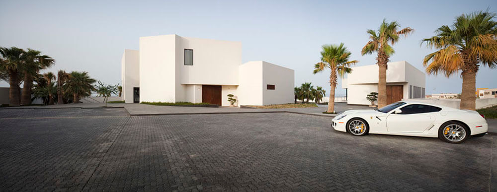 Nestled into the landscape, this beach house blends with the natural topography of the coastline of Kuwait. It slowly unfolds itself to the visitor, as it is approached from the desert.