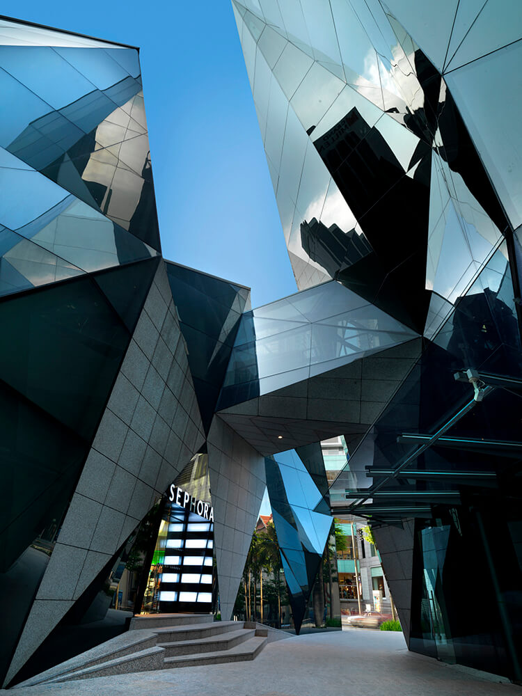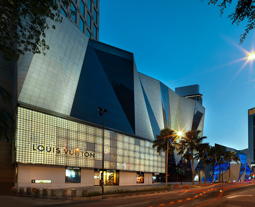 Kuala Lumpur’s Starhill Gallery is one of the city’s premier shopping malls featuring an extraordinary array of luxury branded goods and fine dining restaurants. Spark’s proposal deals with The reinvention of the façade of Starhill facing Bukit Bintang as urban sculpture engaging with the public realm and the pedestrian is the concept of SPARK’s proposal. A new pleated skin in glass and stone inspired by the tailoring of Christian Lacroix’s theatre costumes wraps the existing building to create a striking new identity for Starhill. French retailer Sephora have a new triple height flagship pavilion at the road intersection, the completed ensemble exemplifies the quality of the products on sale at Starhill; classic, well manufactured and timeless. The lightweight steel and glass façade is the first of its kind in Malaysia. A new identity for Starhill Gallery is established with the crystalline form of the façade and pavilion that reaffirm its position as the foremost destination for luxury shopping in Southeast Asia.