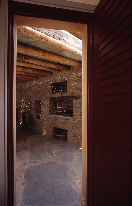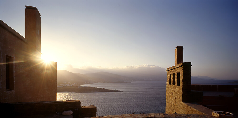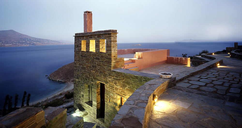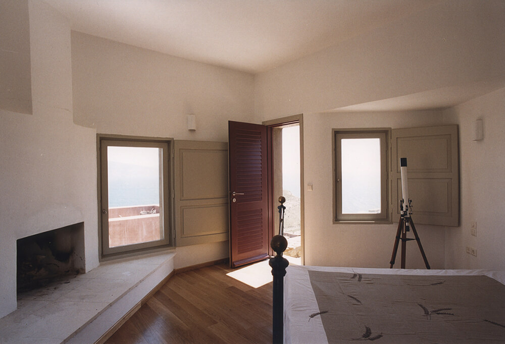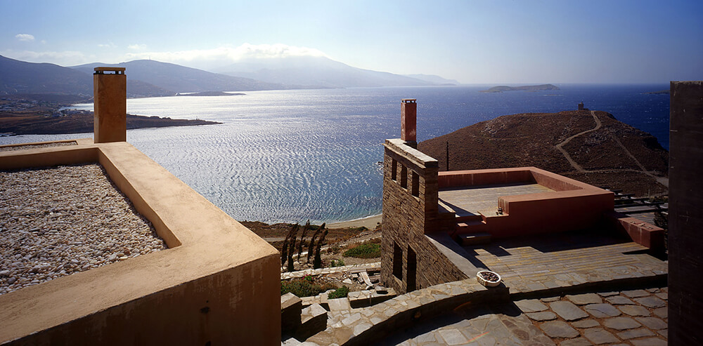 Solids and voids are in a dialogue that relates to the landscape of the island and its traditional local architecture. The pattern echoes the Andriotic settlements, which are characterized by a rather loose formation with absence of connecting parts between buildings that stand detached. Moreover, it does echo the geomorphology of the island where ravines alternate ridges on their sloping route towards the sea. It also alludes to the scattered reefs around the bay detaching the endless water surface thus creating a new “topos”.