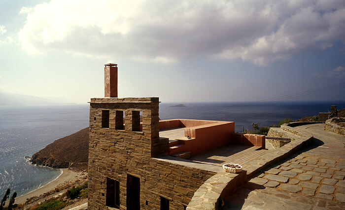 The property is located in the middle of a steep hillside west of Gavrio Bay. The only landmark in the area is the old lighthouse on the southern edge of the slope.