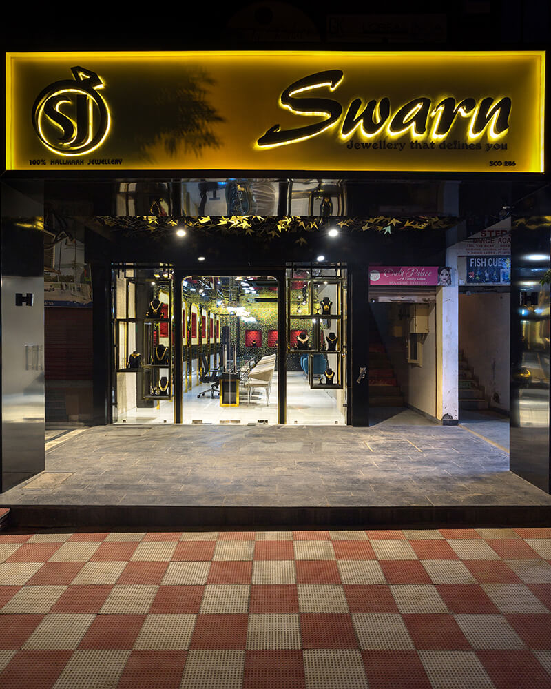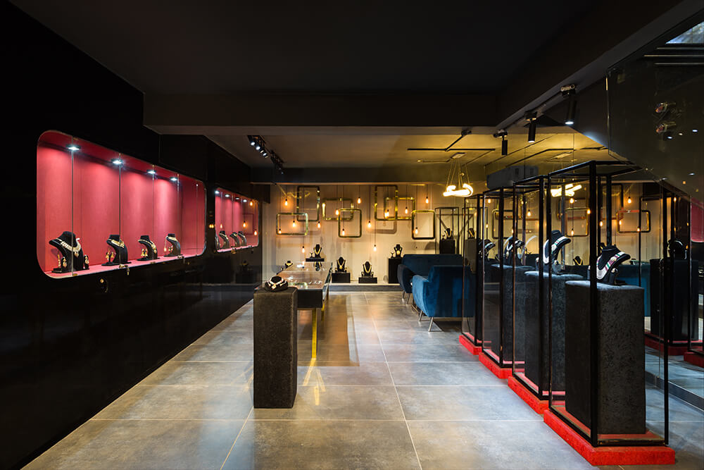 An all encompassing exclusivity is put forth by this jewellery retail store in Chandigarh, much like the idea of The Gold Standard. The design was steered by the brief to embrace the idea of exceptionality and uniqueness to propound the brand’s identity – the jewelry that defines you.