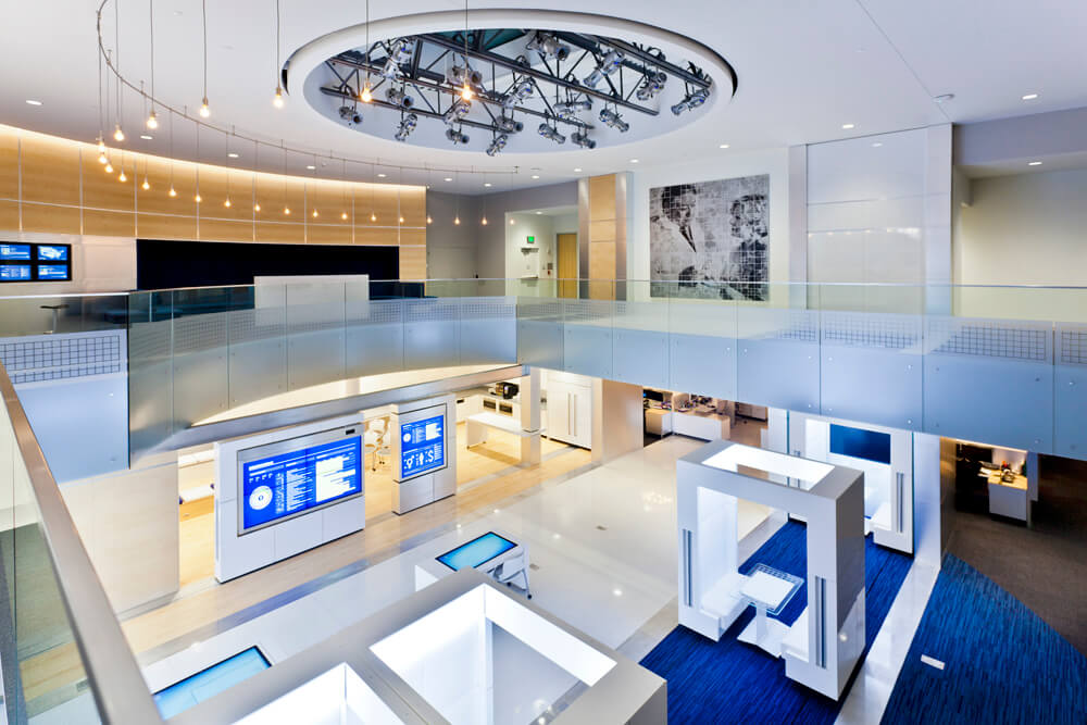 Express Scripts is responsible for managing pharmacy benefits for about 90 million Americans. In today’s complex environment, the company’s innovation solutions, and insights from actionable data provide the company with a unique opportunity to deliver on its mission: making the use of prescription drugs safer and more affordable. To demonstrate what Express Scripts’ 30,000 employees do every day to advance that mission, Clickspring designed a combination workplace and visitors tour center called The Lab. Located in Express Scripts’ Technology and Innovation Center in St. Louis, Missouri, the Lab is both a showcase of innovation and an office dedicated to solving some of healthcare’s biggest challenges.