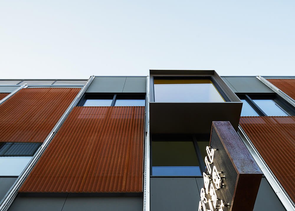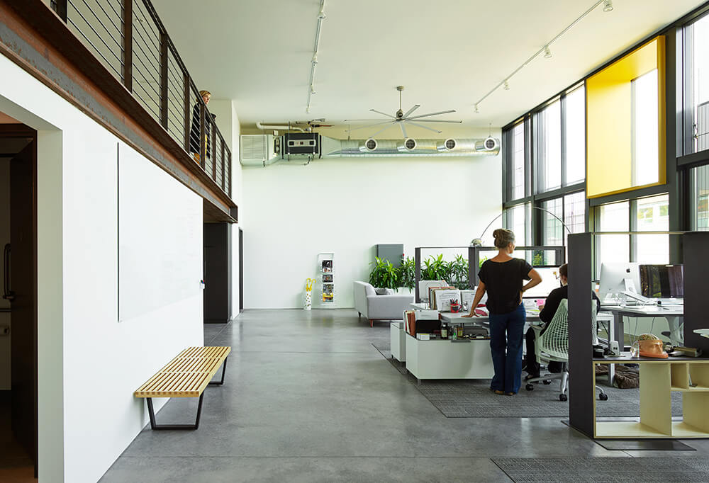 Sustainable features include rainwater cisterns that collect and recycle all on-site rainwater, roof-top solar panels, energy efficient radiant heating, thermally efficient, operable windows on the north and south sides of the building to encouraging cross ventilation, and operable sunshades on the exterior. The modest size of the lot – 4,300-square-feet – meant that every square inch of space of was organized as efficiently as possible in order to maximize usable/leasable areas.