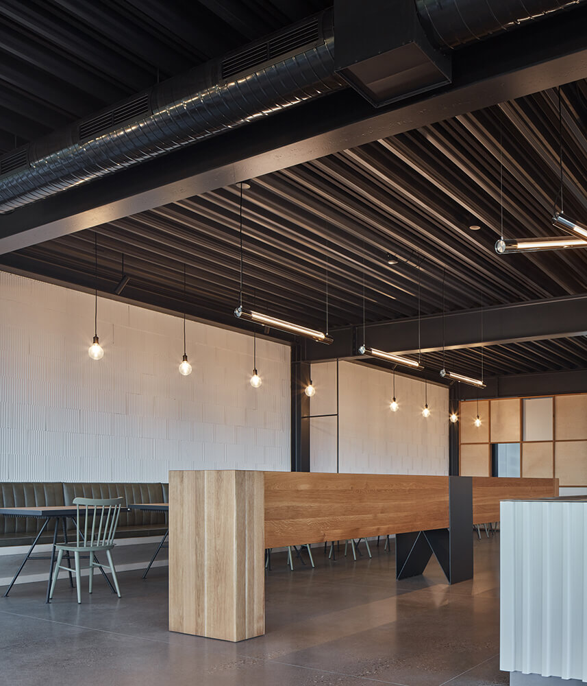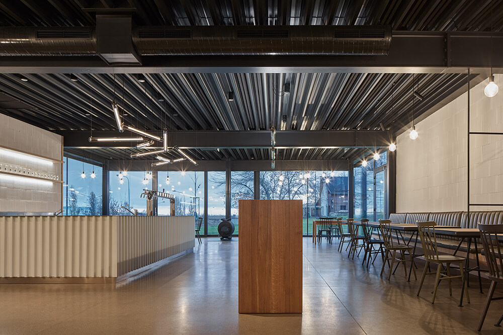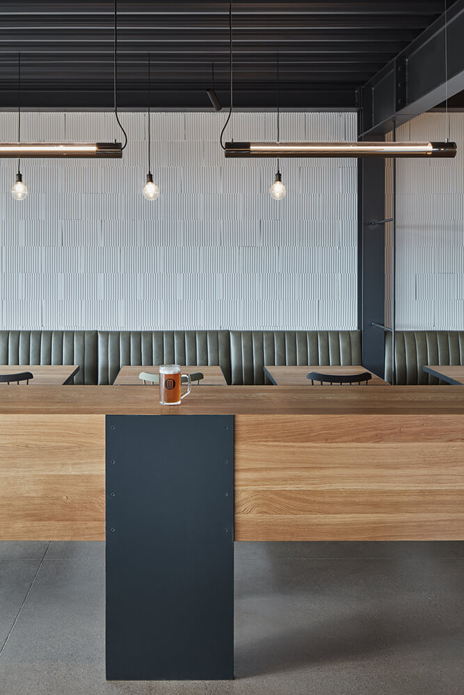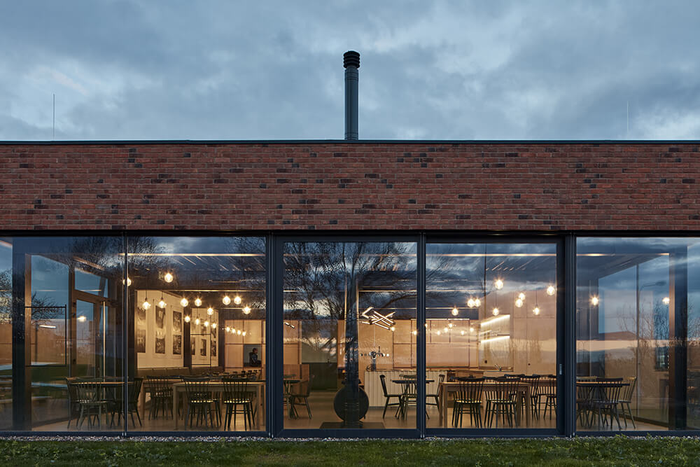 Designed according to the functional needs, the elongated building contains two main operational units. The northern part includes the brewery producing the key item – beer. The opposite side of the building houses the restaurant with a tap room and a kitchen.