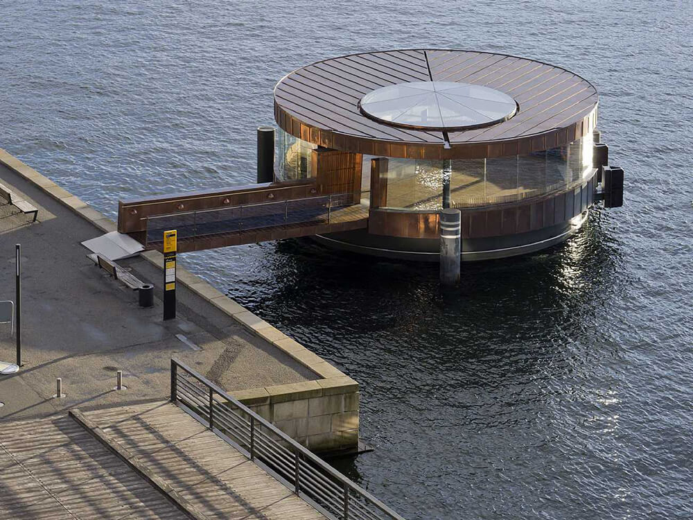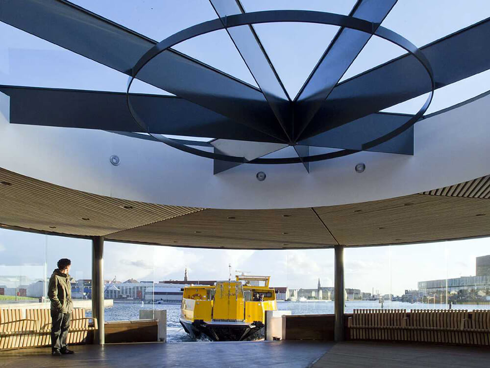 Copper has been chosen to create an architectural reference to the elegant, preserved control towers on the bridges of Knippelsbro, Langebro and Sjællandsbroen. Coppers ages beautifully and is resistant to the harsh harbour environment.
