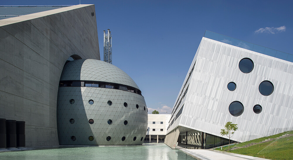 The symbolical approach is depicted by the distinct and dynamic Euclidean forms and their poetic compositions. Foyer and the concert halls are located on the lowest level of the site and a reflection pool surrounded them. The pool mirrors the sky, the city and the halls around, reflecting the different weather conditions and redefining the atmosphere every single day. On both sides of this rectangular pool, two identical buildings are positioned diagonally, as if popping out of the earth, enigmatizing and embracing the concert halls. The complex creates a crater lake imprint and otherworldly impact. In these upward-tilted buildings, administrative and educational units and professional studios are placed. Guest’s experience is a clear incentive which eschews a singular roof or facade to convey a sculptural structure composed of seemingly independent forms and the balance of curvilinear and sharp-edged buildings.