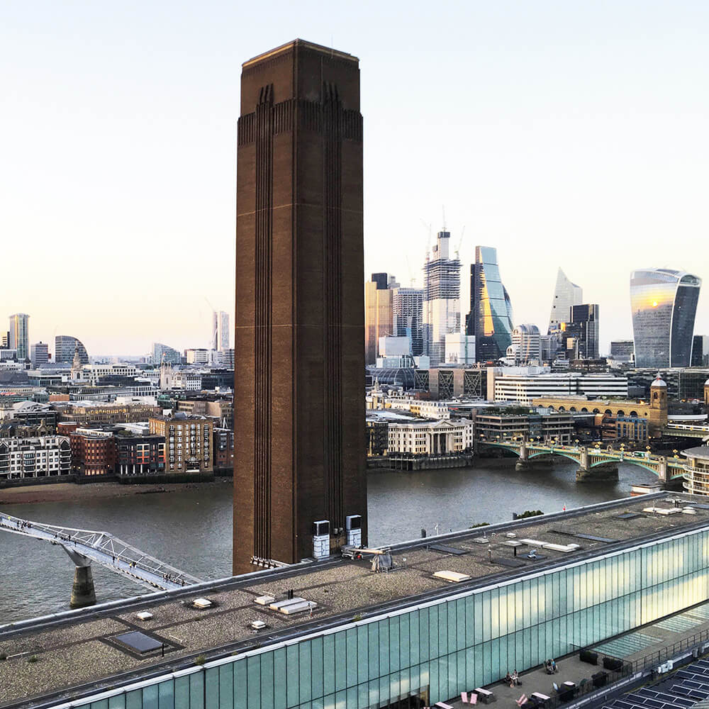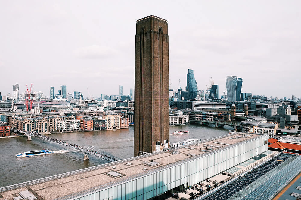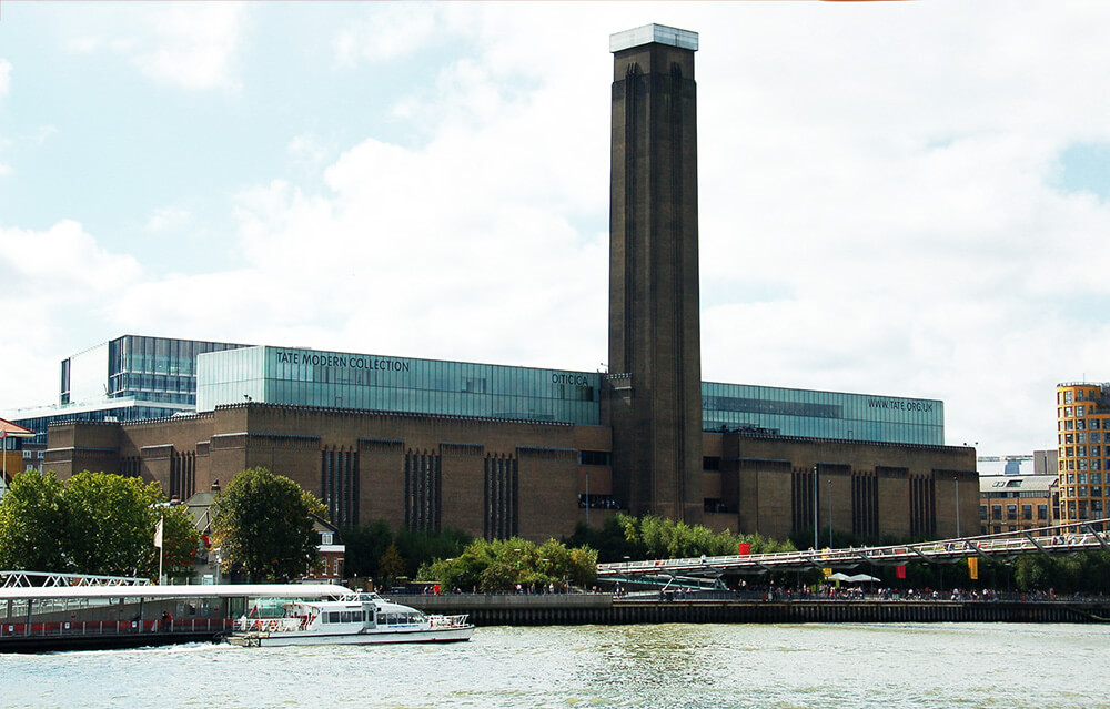 Tate Modern is a remarkable combination of old and new, Tate Modern sits where Bankside Power station was built in two phases between 1947 and 1963 and designed by Gilbert Scott. The same architect also designed Battersea Power Station and Waterloo Bridge. An interior steel structure supports its construction of a brick shell and its striking monumental design with its single central chimney has led the building to be mentioned as an industrial cathedral.