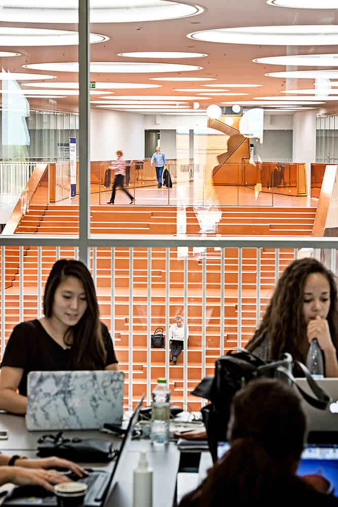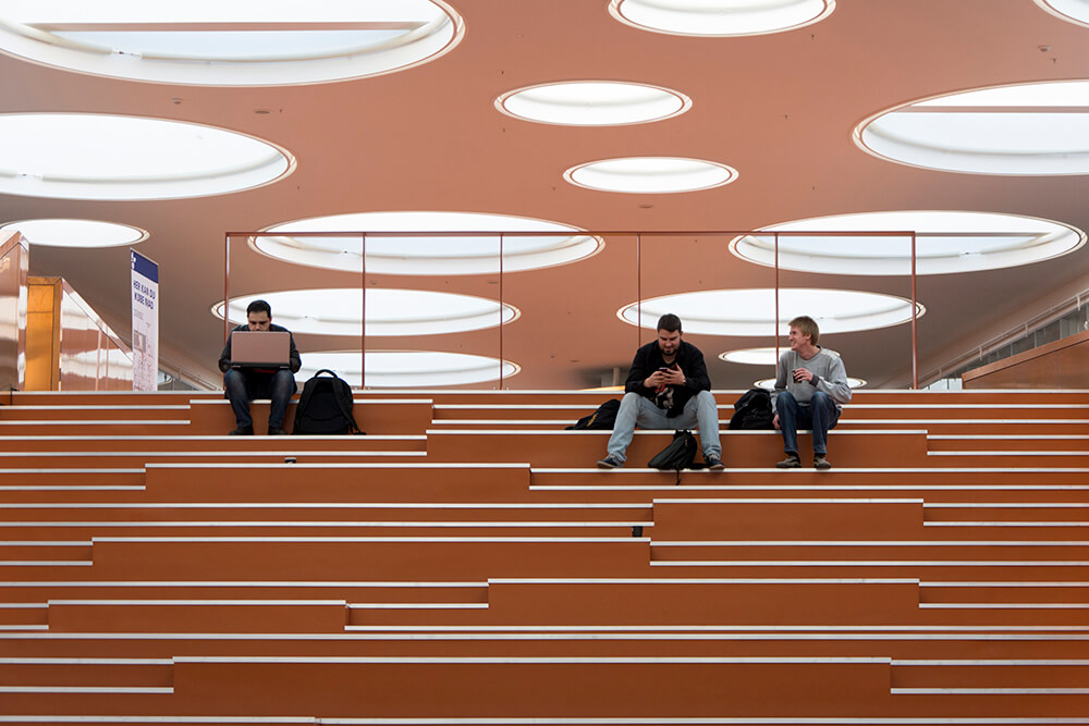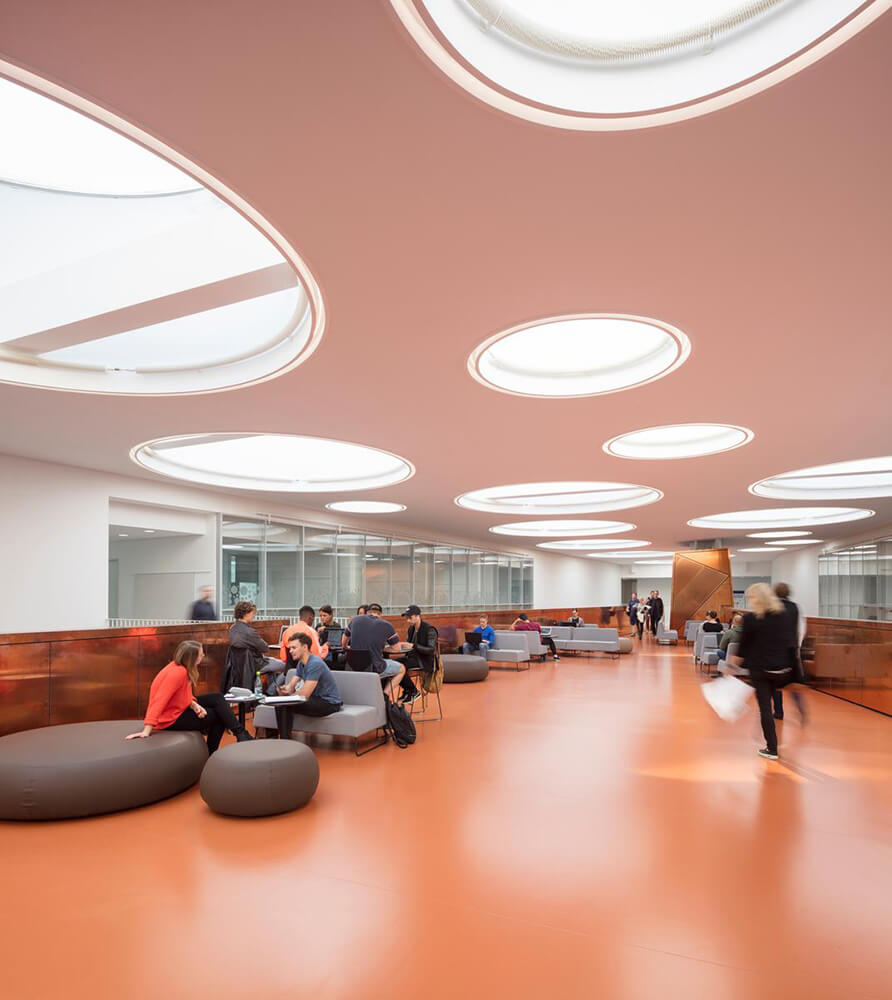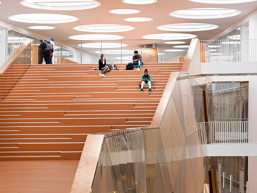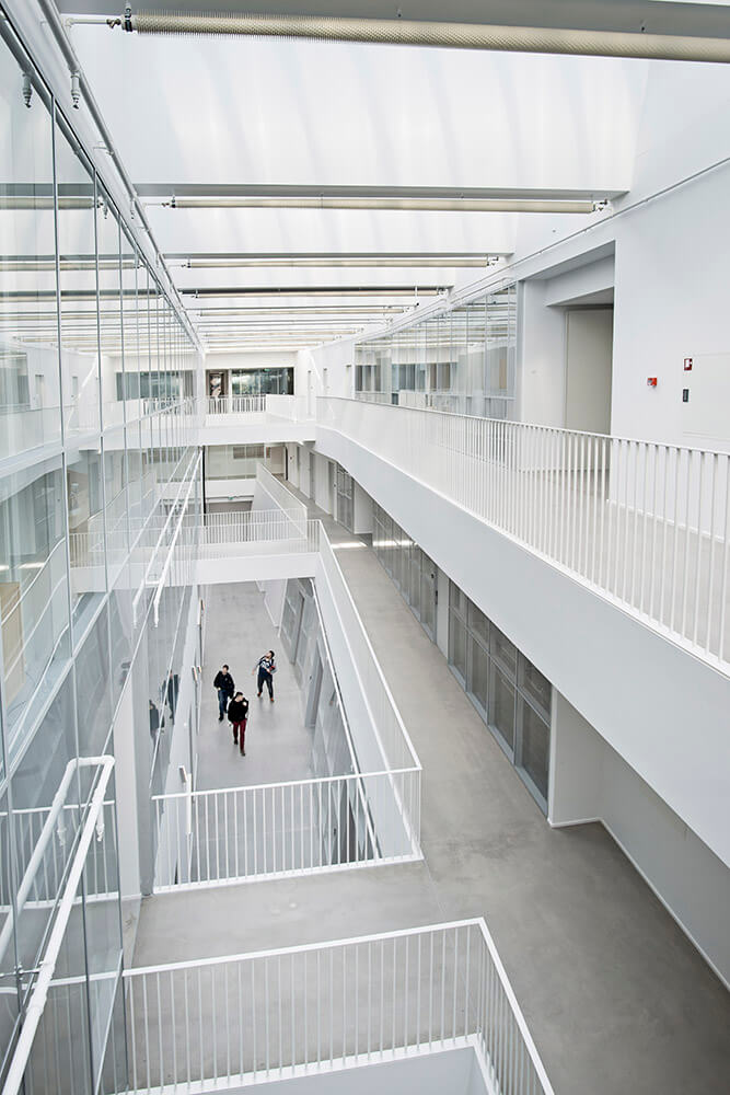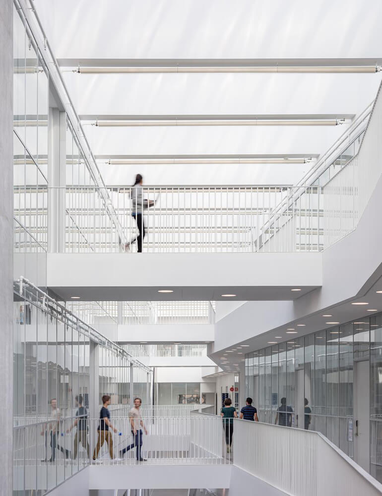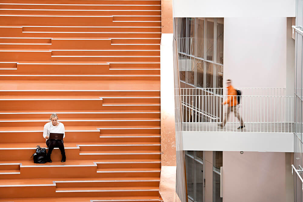 The Technical Faculty is part of the University of Southern Denmark (SDU) in Odense, and constitutes a shared research and education environment for four different institutes. The building is designed as one big envelope consisting of 5 buildings connected by bridges at multiple levels crossing the heart of the complex, a “piece of furniture” containing common functions, meeting-rooms and café/lounge areas. The many connections allow for more fluid boundaries, and more community and knowledge sharing.