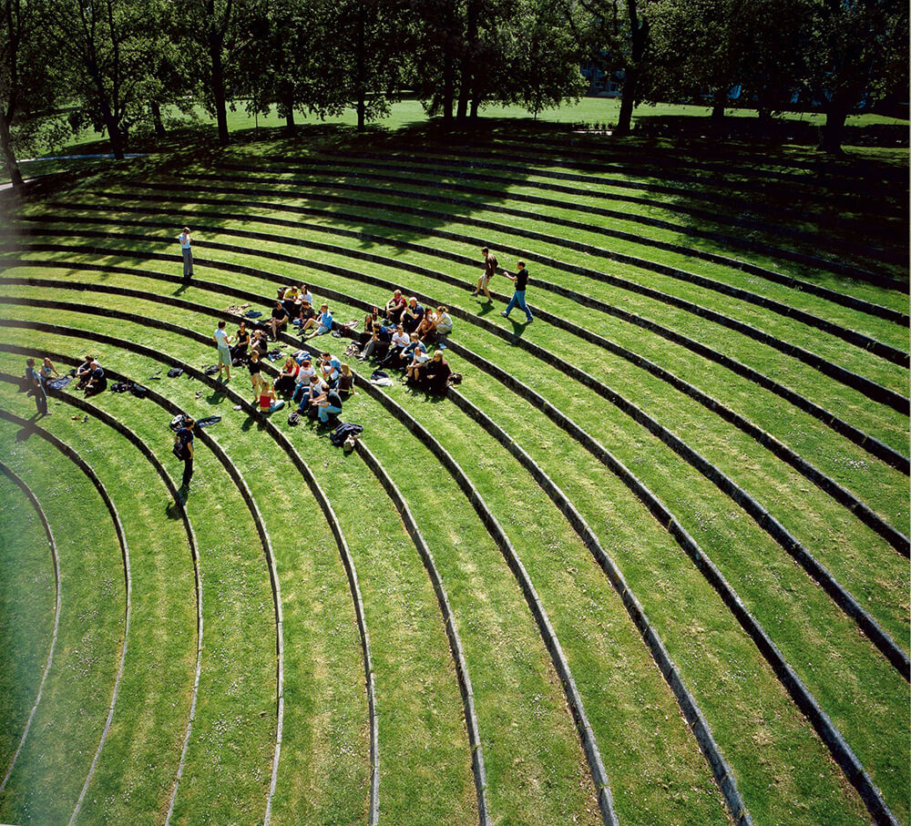 The original scheme for the campus park was made by the famous Danish landscape architect C. Th. Sørensen. Until the death of C. Th. Sørensen in 1979 the development of the park areas were conducted in a close cooperation between C. Th. Sørensen, C. F. Møller and the local park authorities. Since 1979 C. F. Møller Architects – in cooperation with the staff at the university – has continued the intentions of the original scheme for the park, and today the park is a beautiful, green area and an immense contribution to both the university and the city in general.