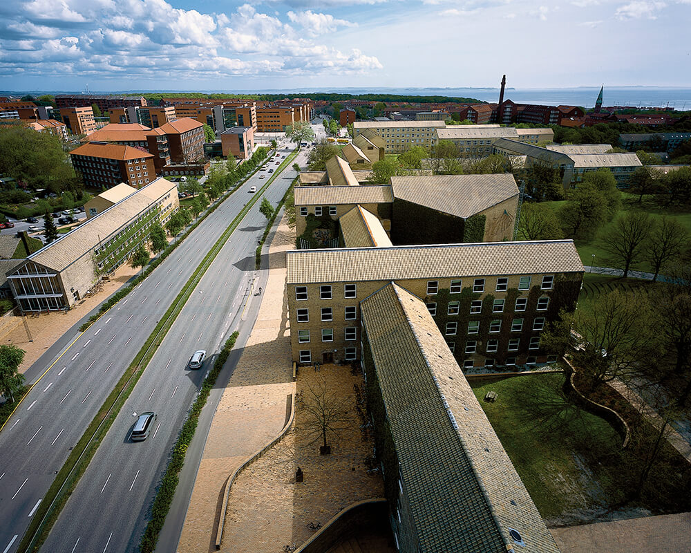 The University of Aarhus, which dates from 1931, is a unique and coherent university campus with consistent architecture, homogenous use of yellow brickwork and adaptation to the landscape. The university has won renown and praise as an integrated complex which unites the best aspects of functionalism with solid Danish traditions in form and materials.