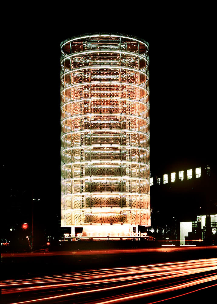 Beyond the volume of the tower, one can see the reflective part which makes the effect truly original with its monolithic shape. When the night falls, the Tower is an architecture of light, looking spectacular. The old tower was demolished and no longer exists, although it was a true urban icon not so much because of its unusual effects created by light irradiated towards the city and not so much for its 21 metre height. Two computers were used to modify the intensity and direction of various light sources on the basis of natural light, weather conditions, wind speed and external noise and control the lighting system. Keeping the building’s relationship with the city alive was above all the intention of Toyo Ito. This intention aimed to make the building continue to interact with its surroundings even in the absence of natural light at night. The new way of viewing light not as a merely functional element but as an integral part of architecture and design, an expressive, characterising element with great potential made this a avery innovative idea at that time.