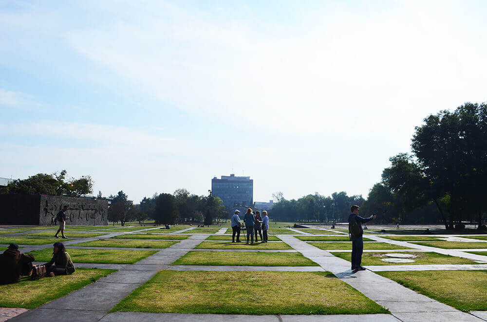 All buildings have as common the gardens and volcanic rock with some notable exceptions: the Rectorate Tower and the Central Library. These tall, square-shaped buildings, standing a bit isolated from the rest, are adorned by murals made by famous Mexican muralists David Alfaro Siqueiros (Rectorate Tower) and Juan O’Gorman (Central Library).