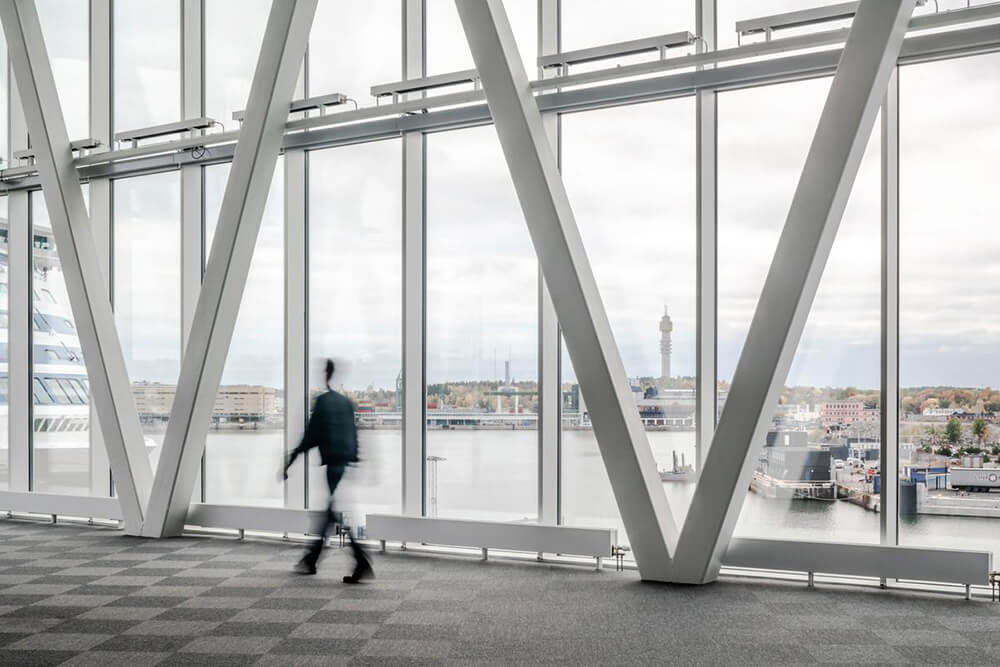Solar energy and geothermal heating/cooling are provided via the building’s integrated systems, making the terminal self-sufficient in energy. Värtaterminalen will receive the environmental certification level Gold.