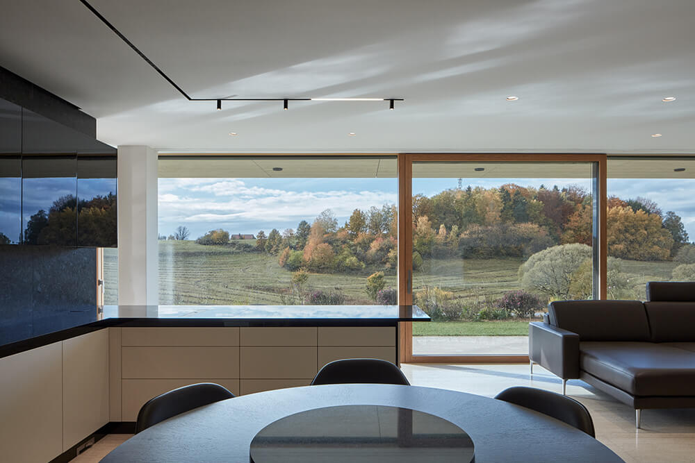 The plot offers amazing views of the opposite side of the valley. Due to the fact that the plot is located outside the built-up area, it offered a unique opportunity to realize a solitary villa with an extraordinary interconnection between indoor and outdoor space. The client’s wish was to create simple, clean spaces with maximum use of natural materials.
