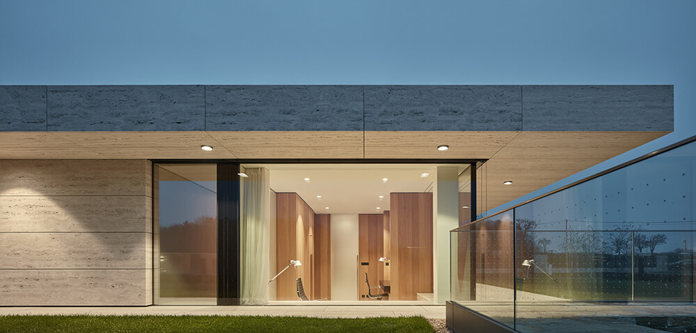 The main material of the house is the stone. In the exterior, it dominates in rough form on fair-faced enclosure and sustained walls. In the interior and adjacent exterior parts of the villa, the large stone facing tiles are used.