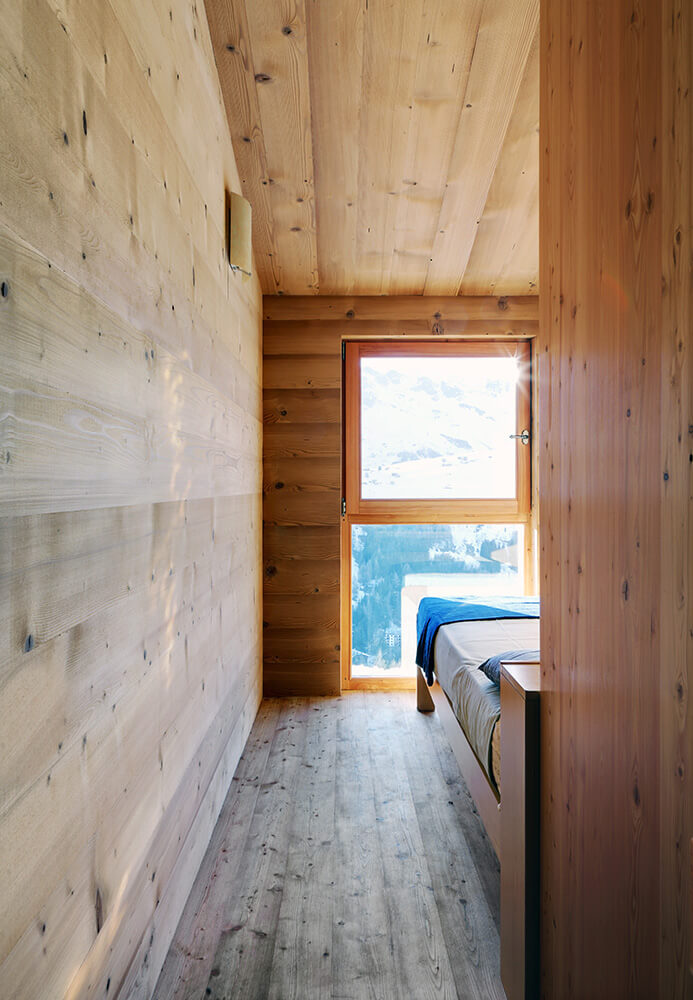 The project is based on two specific conditions: on one side the client’s needs, looking for a small and intimate space; on the other a small, special and precious place. The alpine landscape dominates the place: it becomes evident the condition of a privileged and unique space.