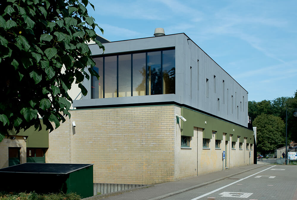 Starting from the intent to upgrade the existing backside of an existing building and the desire to cluster all youth activities in the municipal community of Kortenberg, the choice was made to build a new youth center above the existing storage spaces of the cultural center Columba. This location was also much better situated than the current location of the youth center. The new building will not be an extension of the existing architecture but it will give new meaning to the building and provide an answer to all issues and requirements of the 21st century.